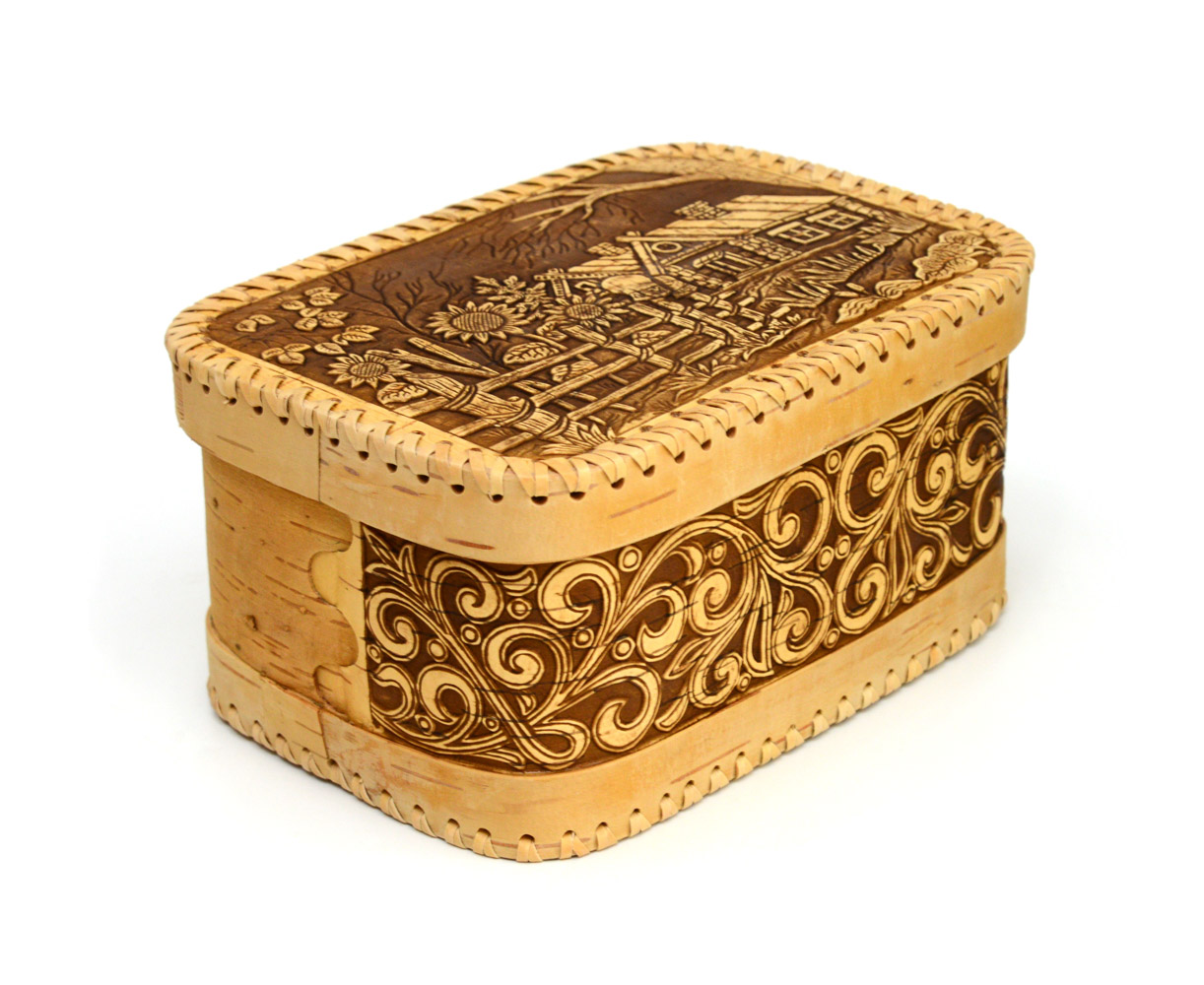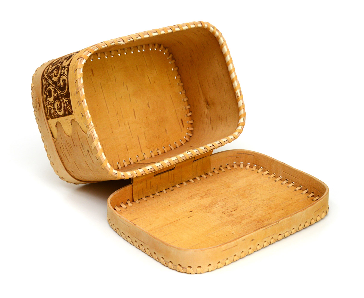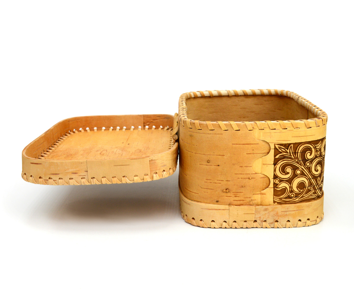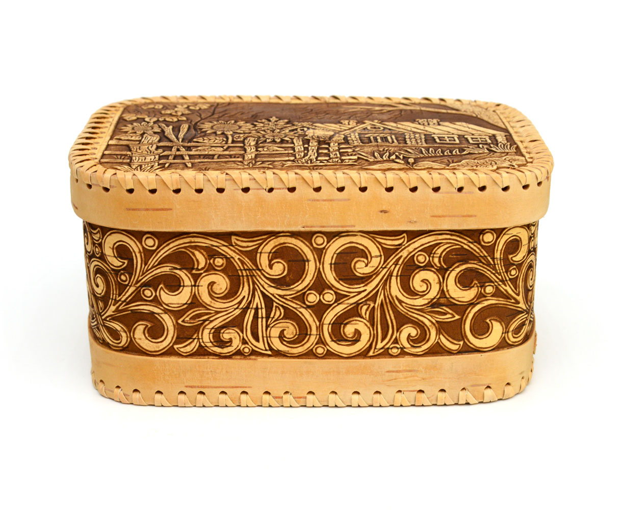 Батонница из бересты маленькая "Деревенька" - сбоку узор