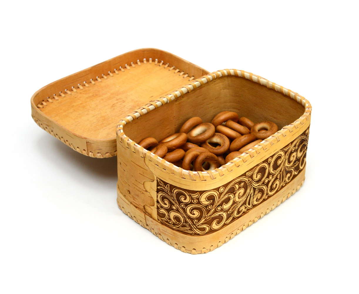 Батонница из бересты небольших размеров – это универсальное изделие, которое можно использовать на кухне или в быту. Объем 2,7 литра.