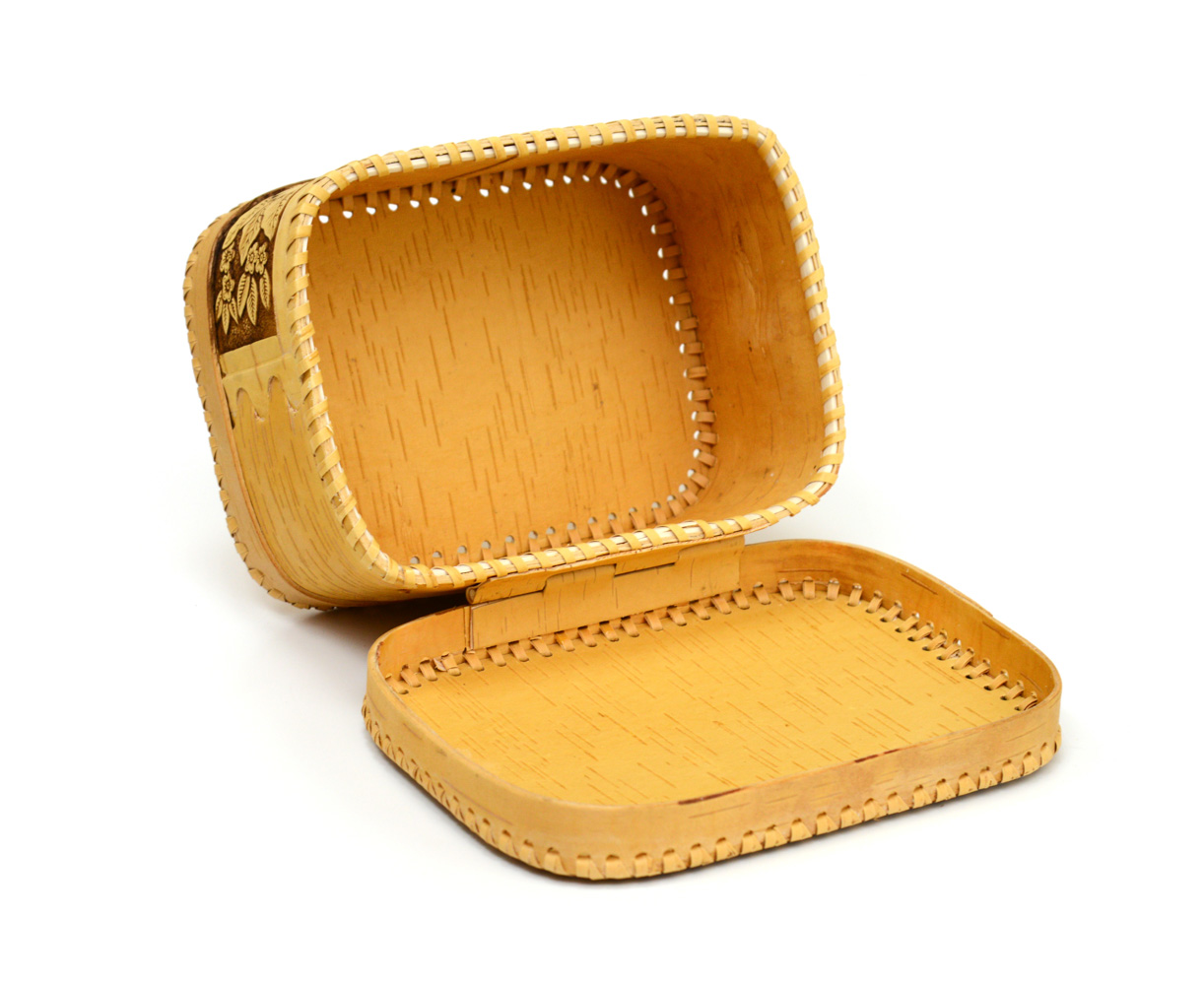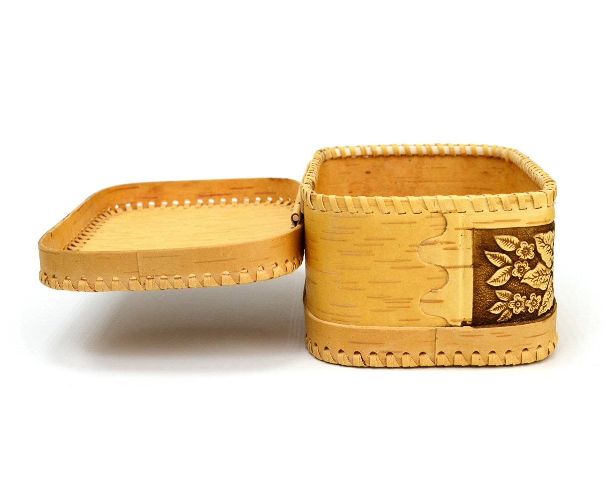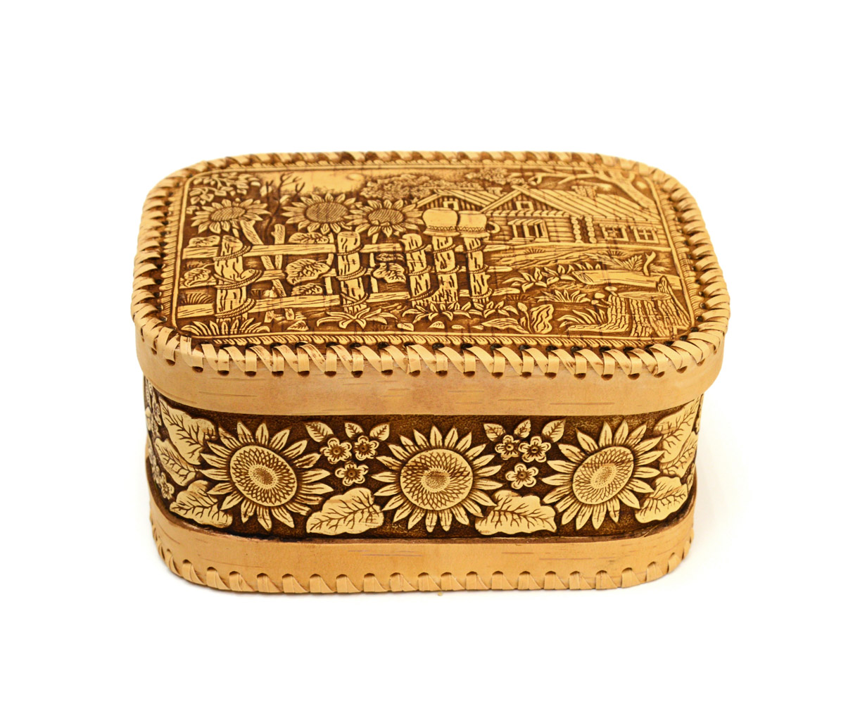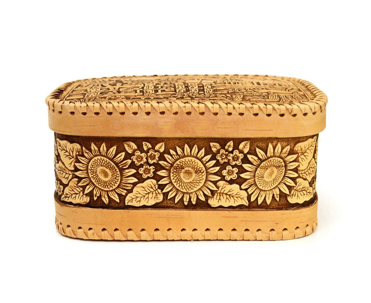Батонница на шарнире "Деревенька". Большая шкатулка из бересты