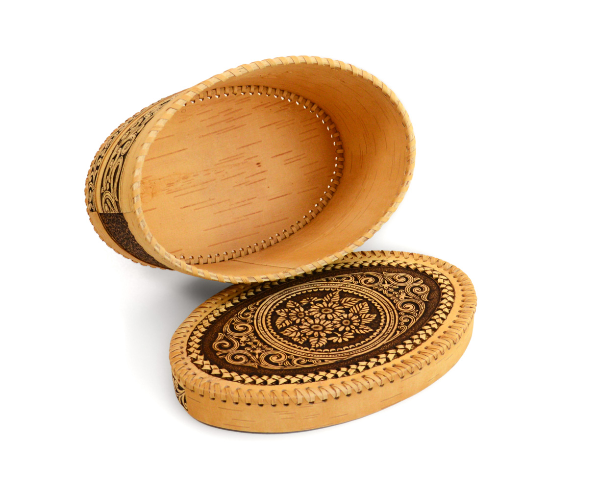 Батонница из бересты овальная "Ромашки". Шкатулка из бересты