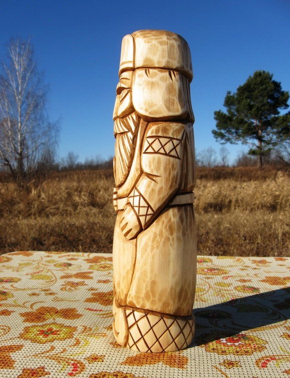 Большая деревянная статуэтка домового, выполненная из цельного куска дерева — кедра. Имеет приятный аромат.