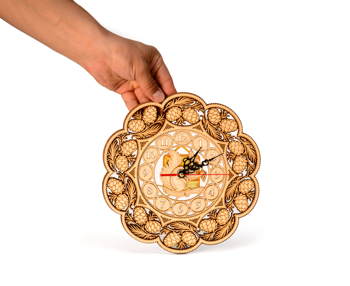 Часы деревянные средние круглые "Белка и шишки" D24