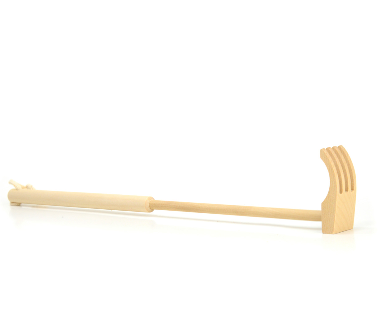 С помощью деревянной чесалки с длинной ручкой можно легко почесать спину, когда находишься в неудобном положении или если движения рук сковывает одежда, а также при травмах или приступах остеохондроза.