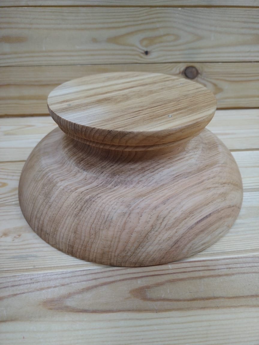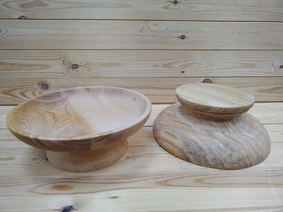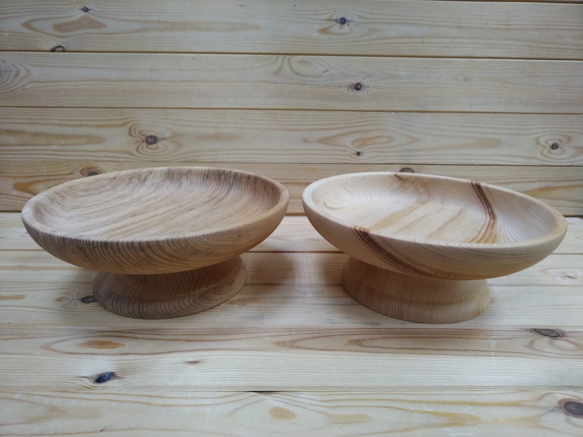 Большая и вместительная деревянная фруктовница на ножке. Сделана из кедра. Покрыта льняным маслом для защиты от влаги.
