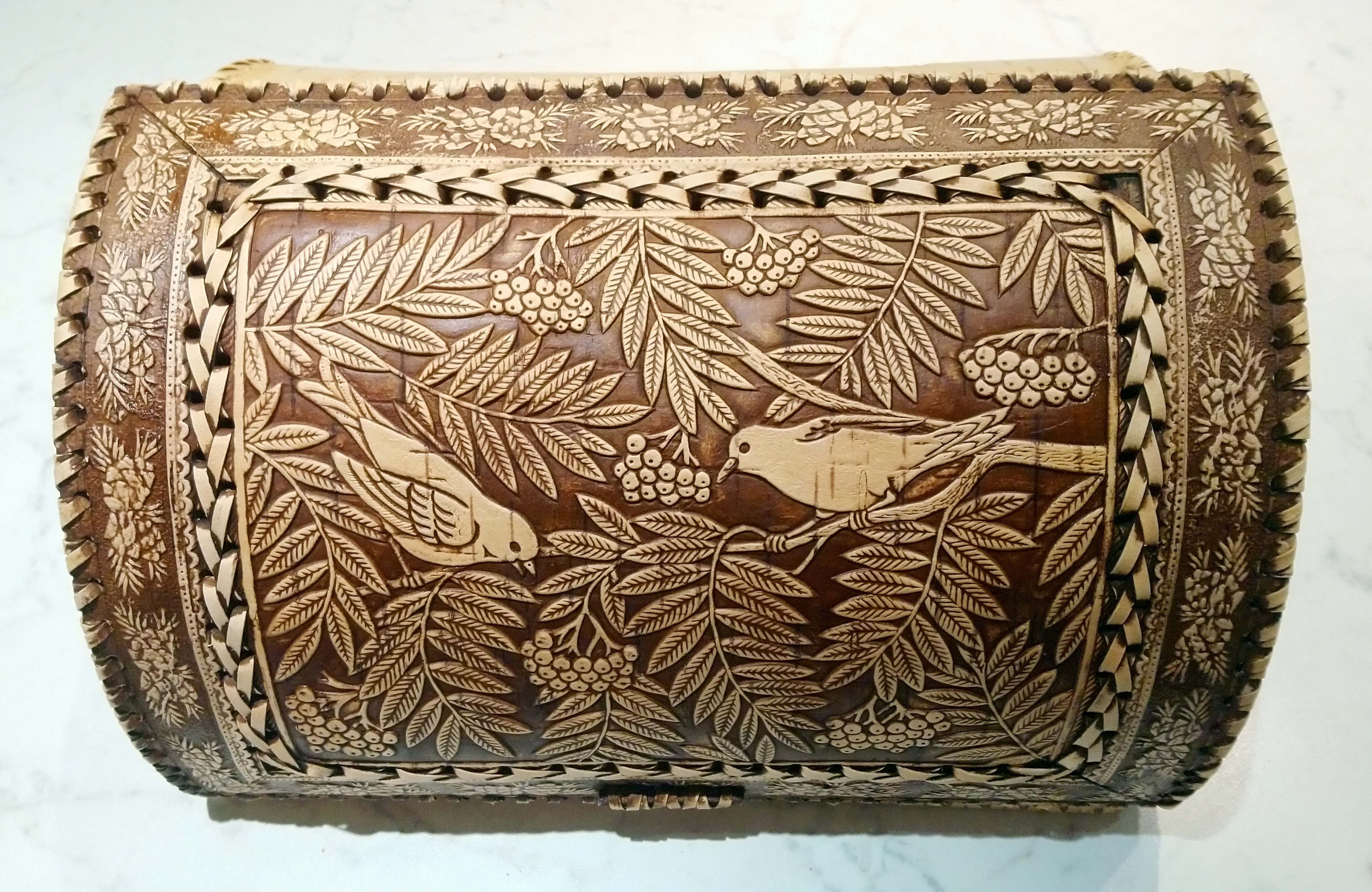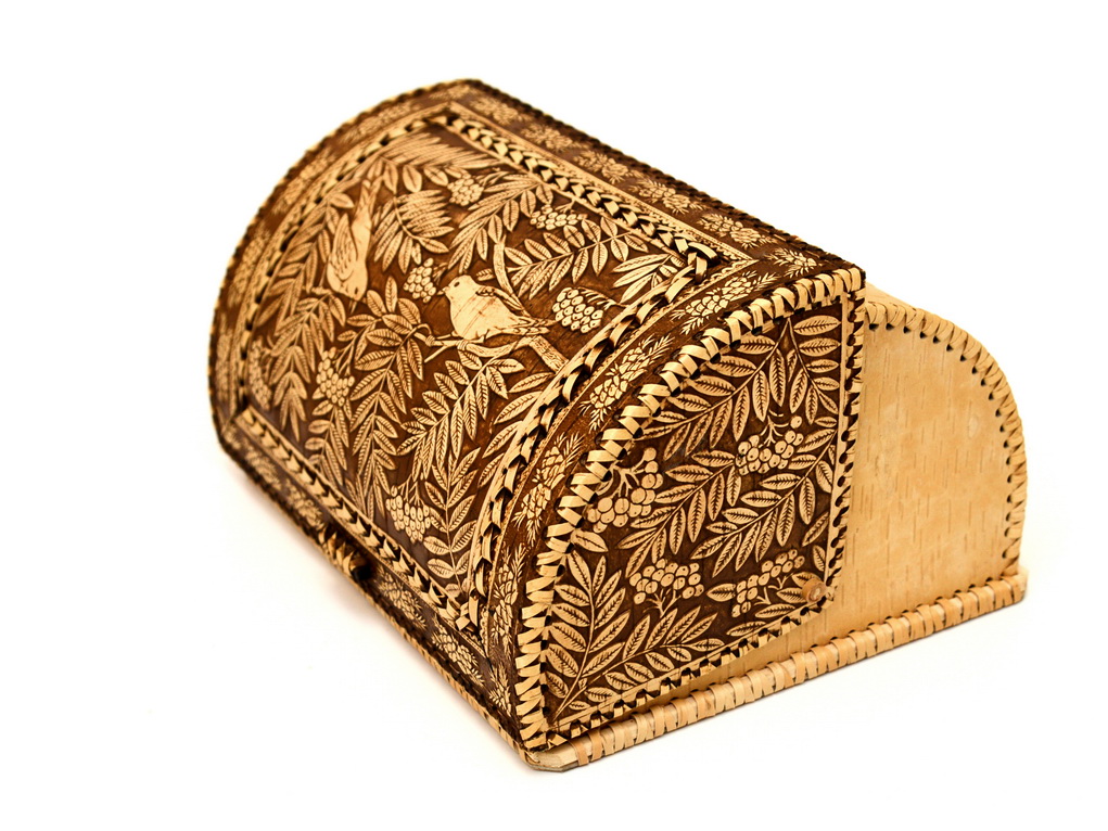 Хлебница из бересты большая "Птицы в рябине"