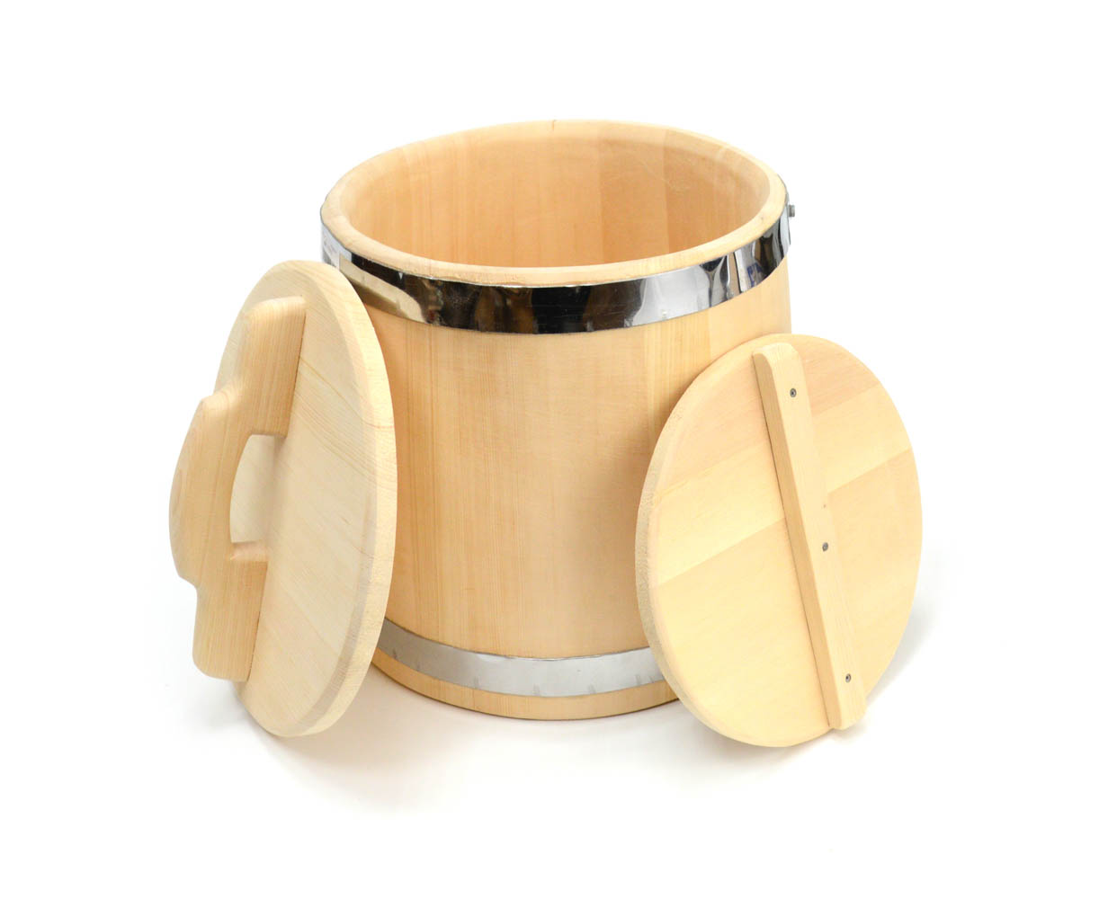 Перед использованием кадку необходимо размочить, для этого нужно залить ее полностью холодной водой минимум на 6 часов, лучше на ночь. Затем кадку нужно запарить, для этого вылейте холодную воду и налейте в нее кипятка, примерно 30% от объема. Через час кадкой можно пользоваться.