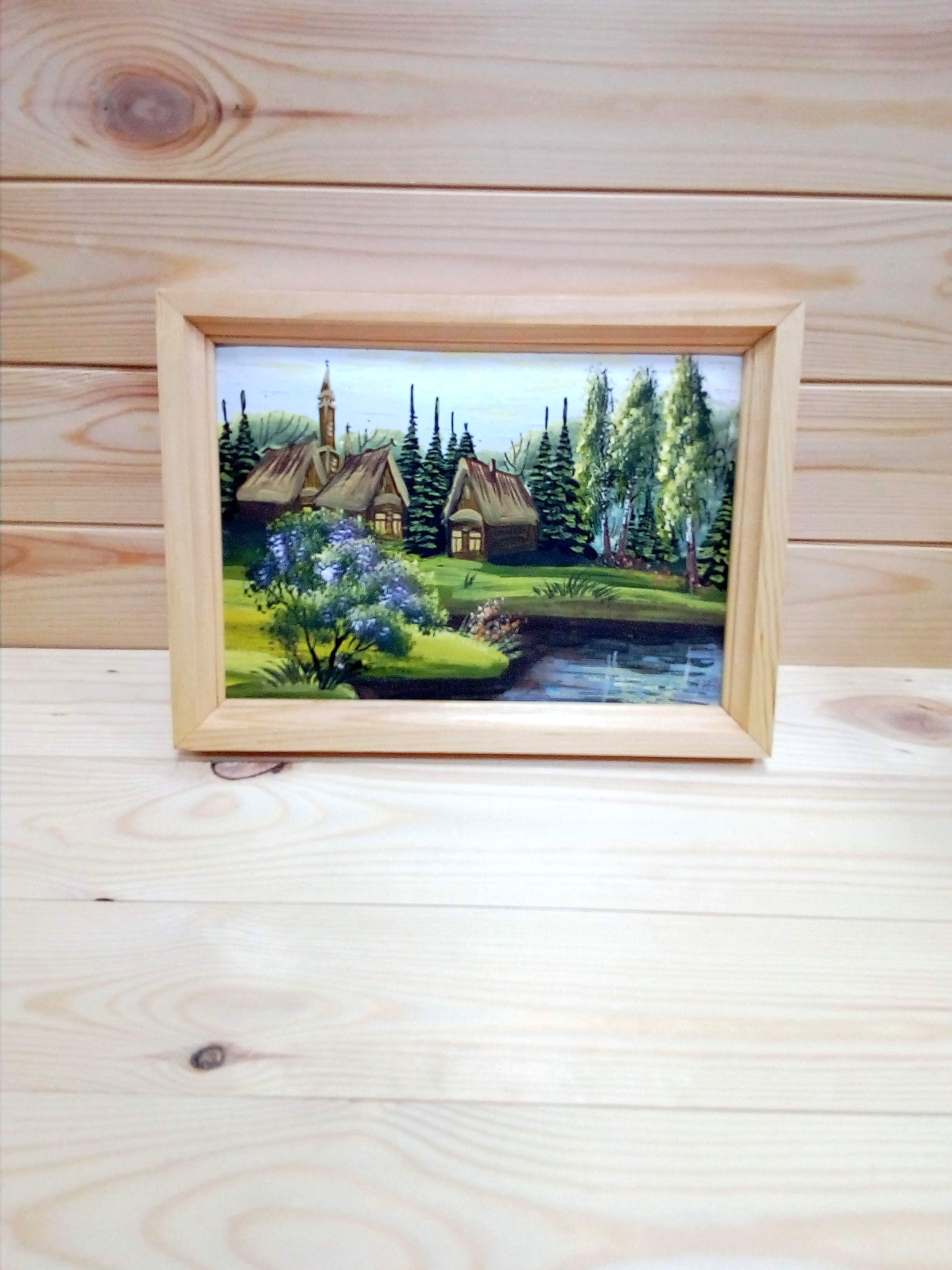 Такую картину можно повесить на стену или поставить на полку. Рамка деревянная. Рамка может быть светлой или темной.