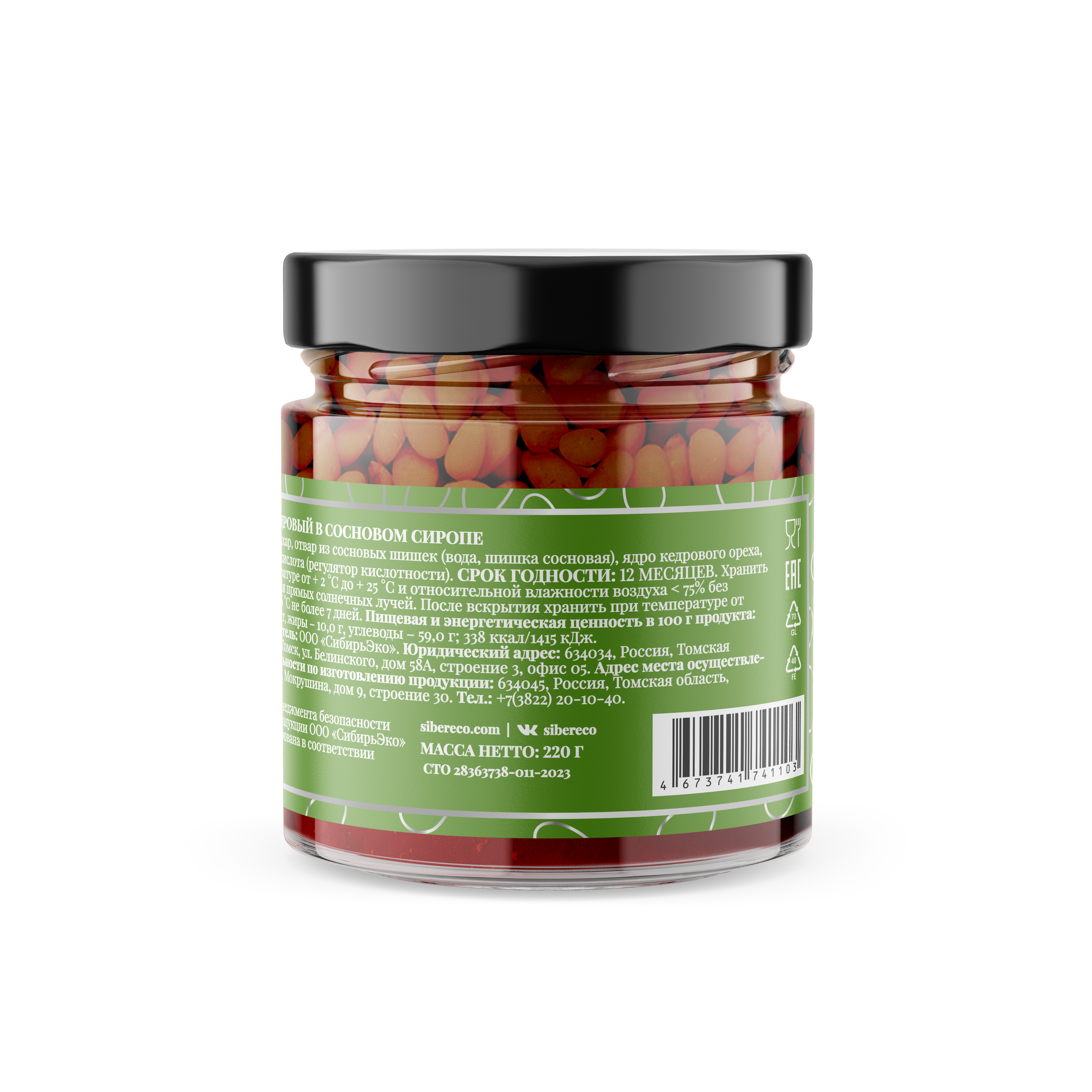 Ядро кедрового ореха в сосновом сиропе готовится по авторскому рецепту коренных жителей сибирской тайги.