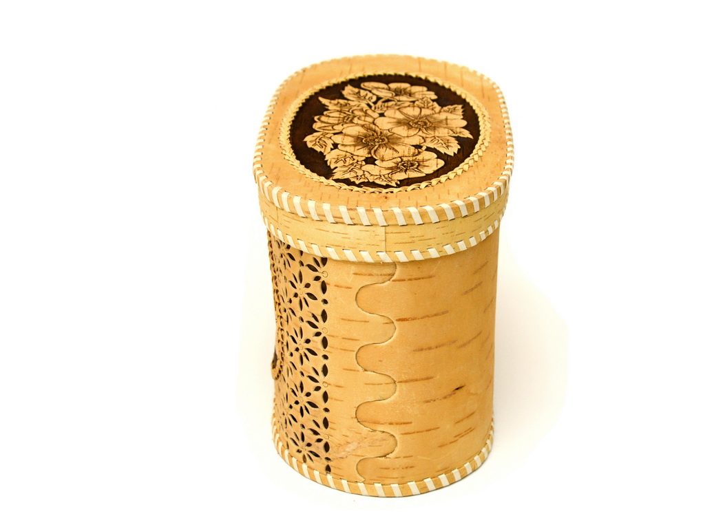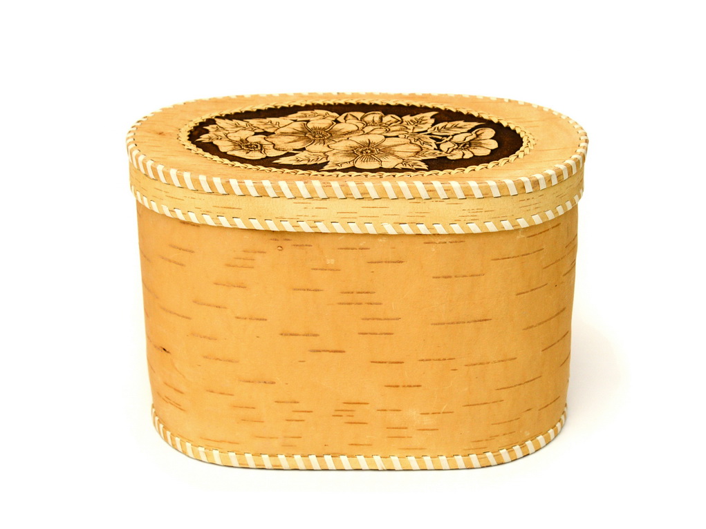 Короб из бересты. Крышка без ручки. Передняя стенка украшена резьбой. Подойдет для хранения хлеба - вмещает 2 булки хлеба, булочек, печенья, сухарей, сухофруктов, домашних вещей. Хранить можно все, что захотите, кроме сыпучих продуктов, внизу по бокам она плетеная, может высыпаться.