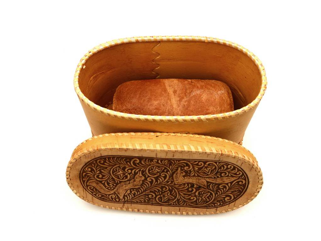 Хлебница из бересты на 1 булку хлеба. Короб из бересты маленький "Белочки"