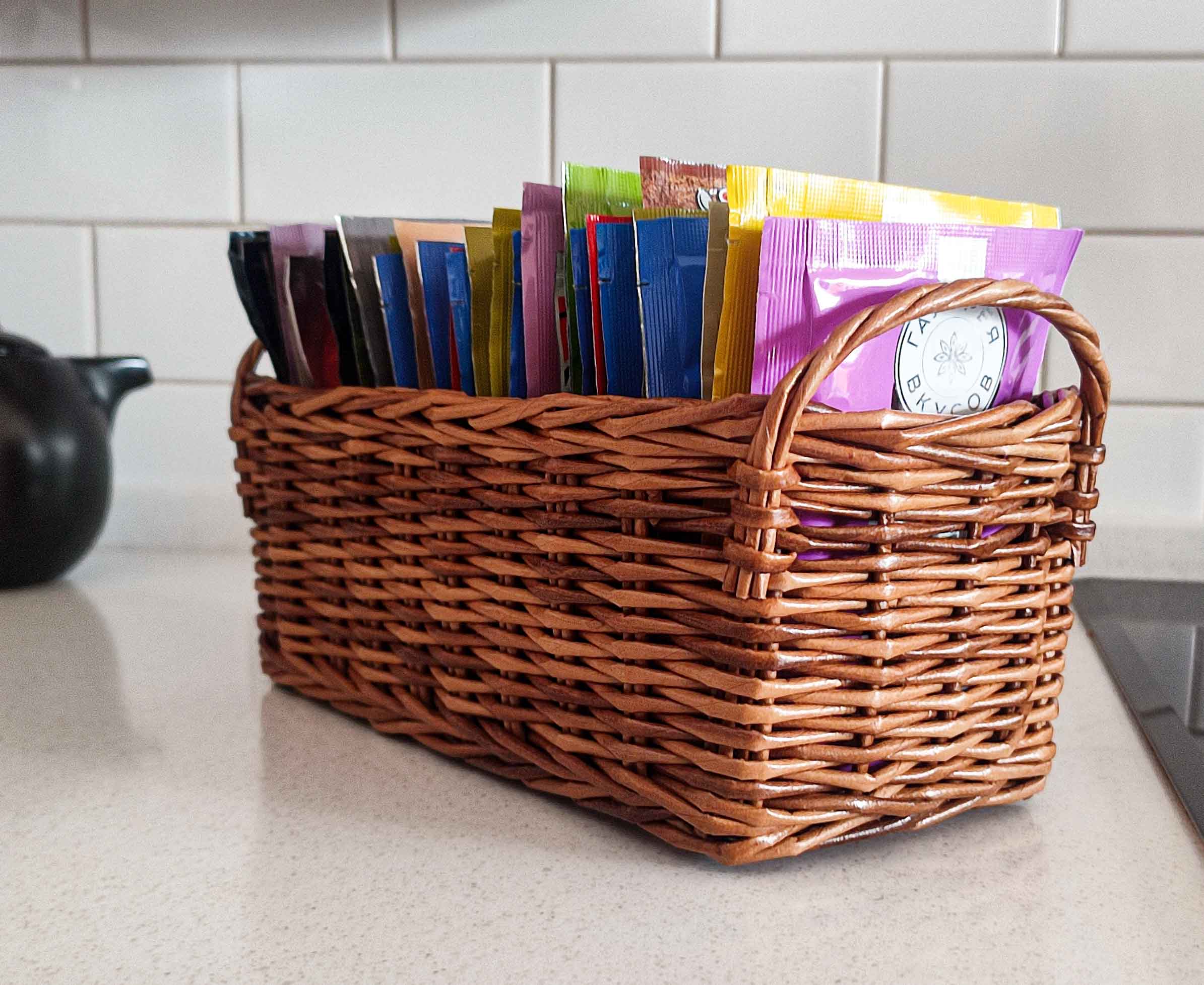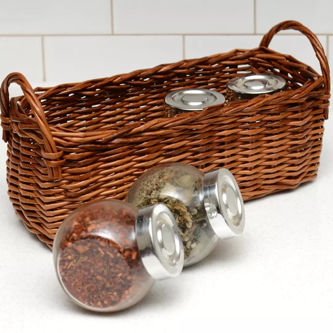 Плетеная корзинка с ручками для кухни. Можно использовать под специи, а также хранить конфеты, фрукты и многое другое.