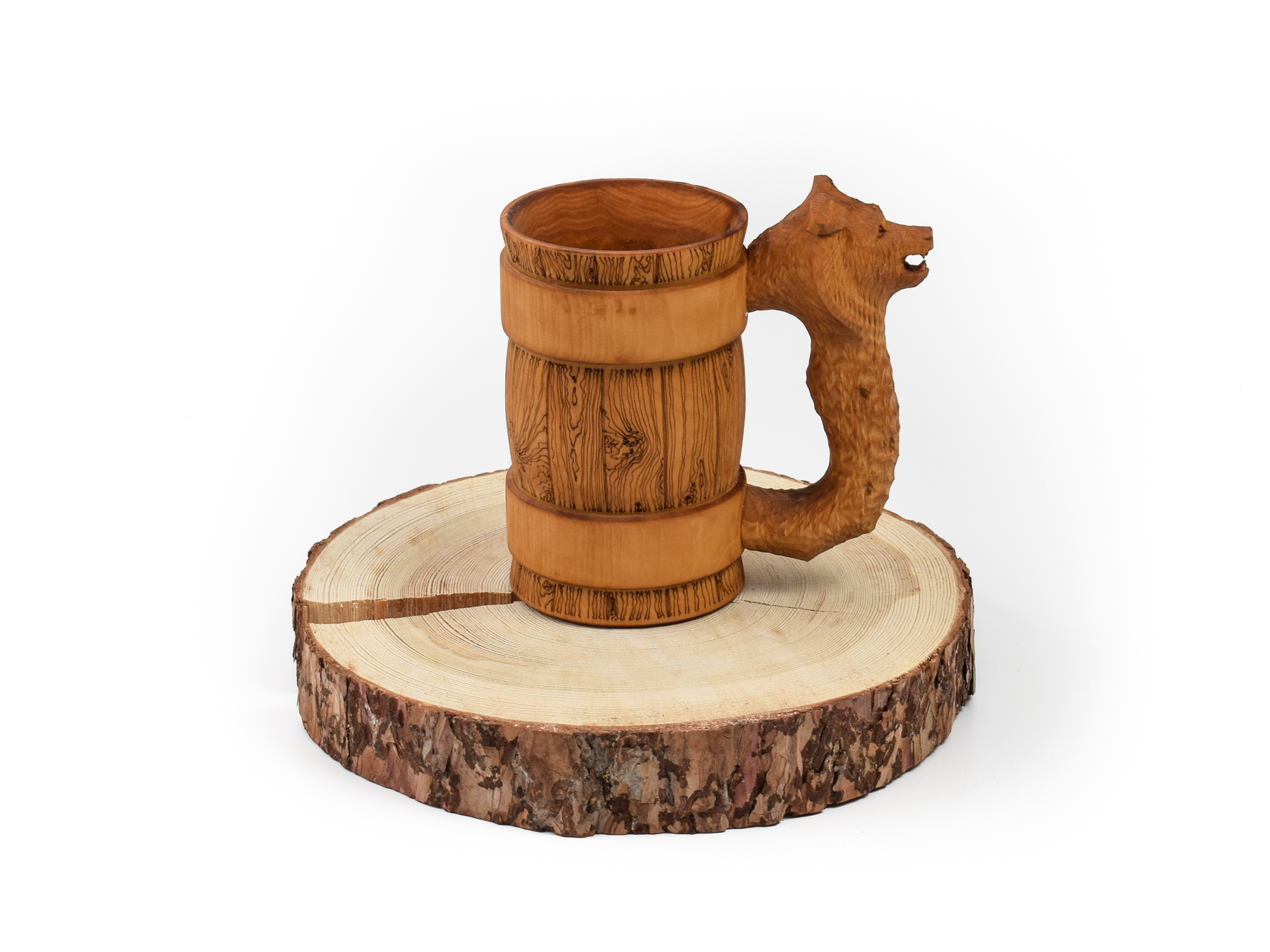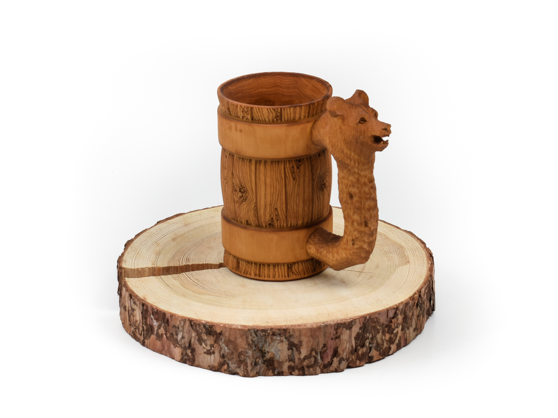 Кружка деревянная пивная с резной ручкой «Медведь» 0,5 л