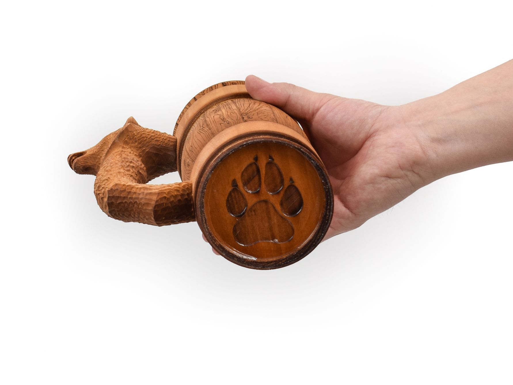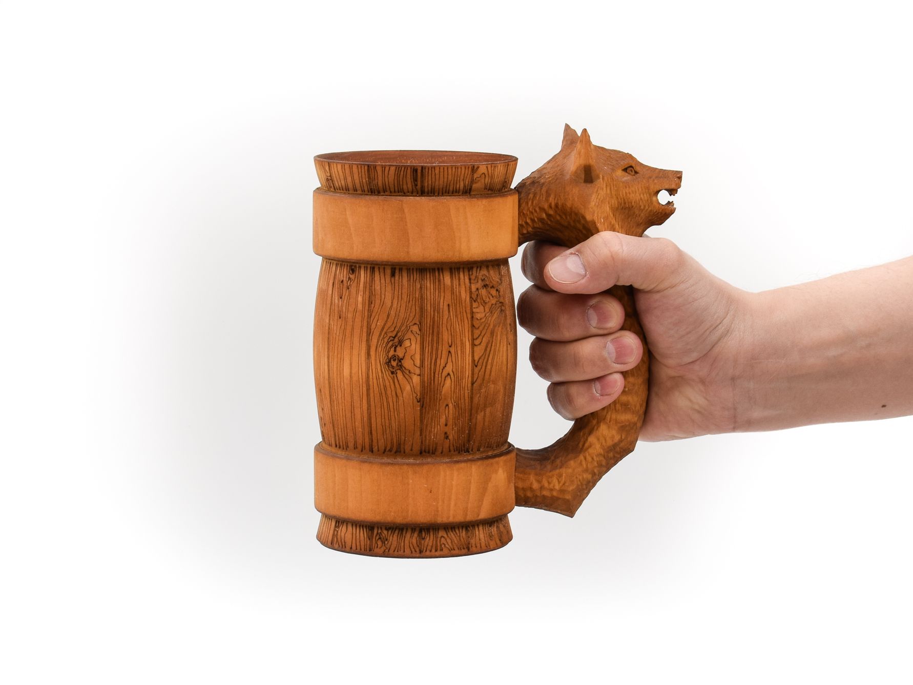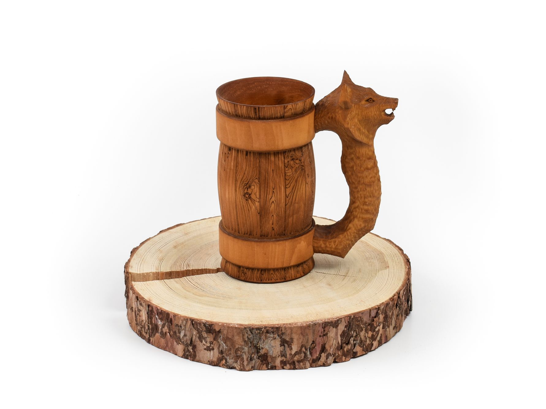 Кружка из дерева с резной ручкой «Волк» 0,5 л