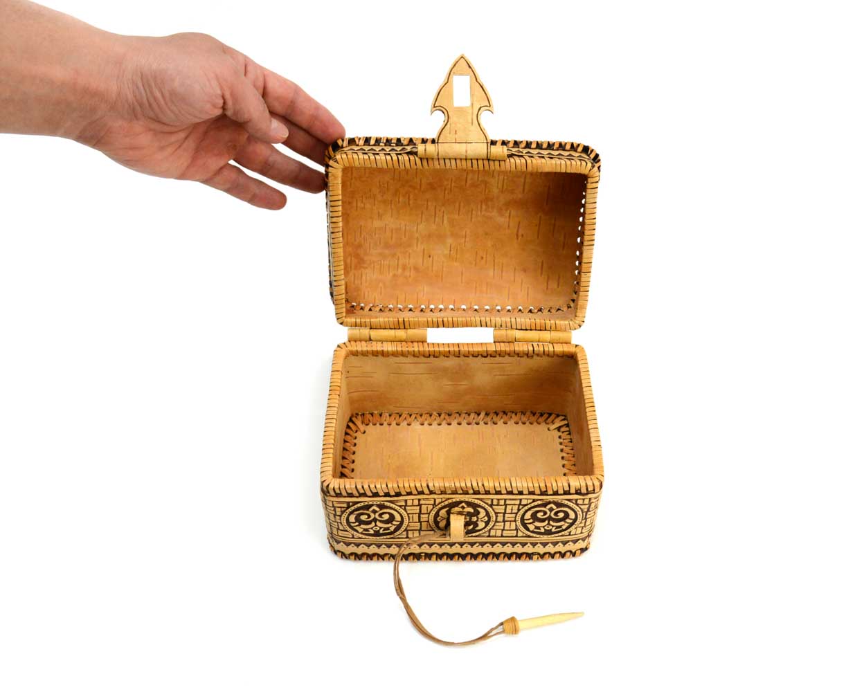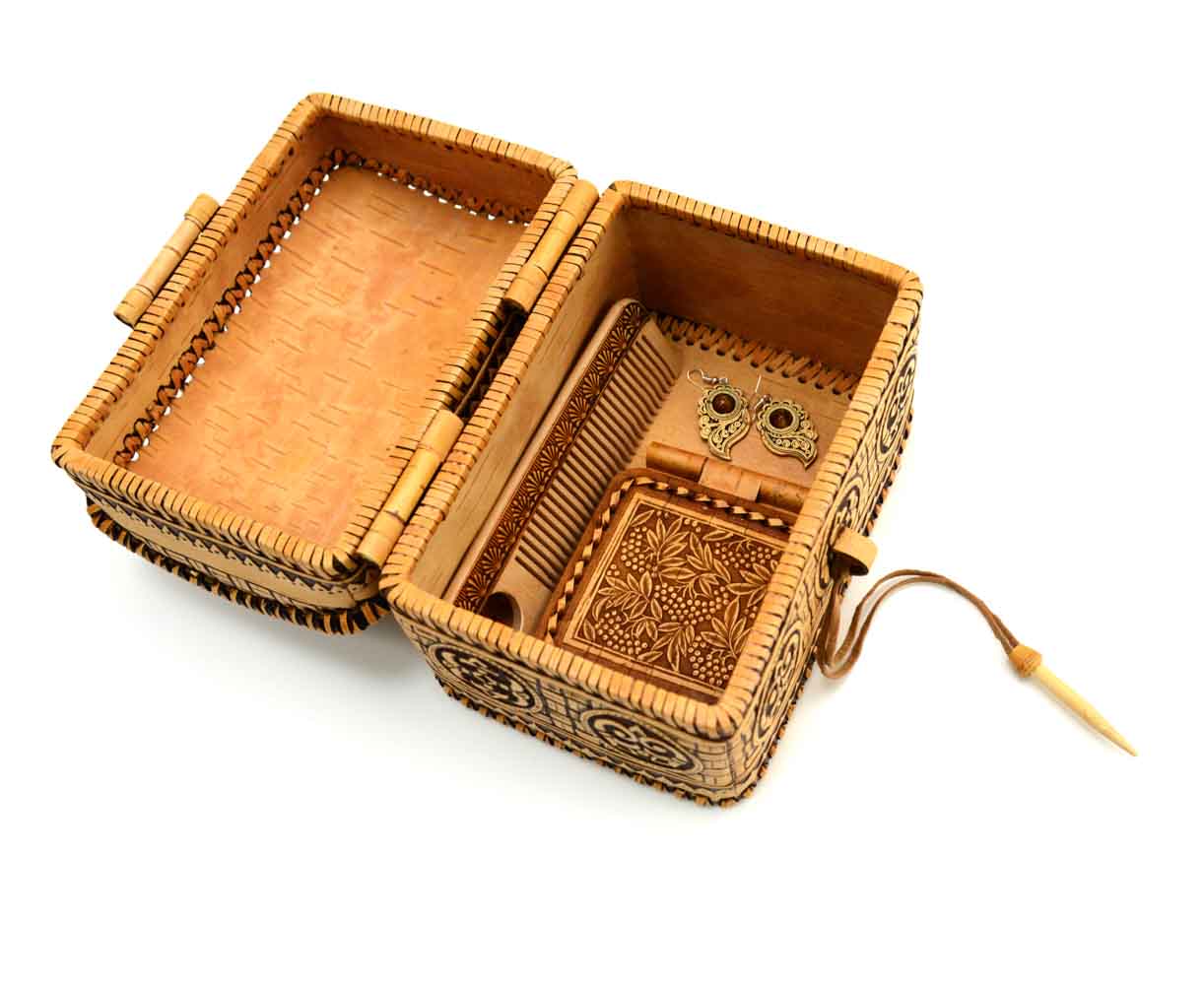 Шкатулка - ларец из бересты на шарнире