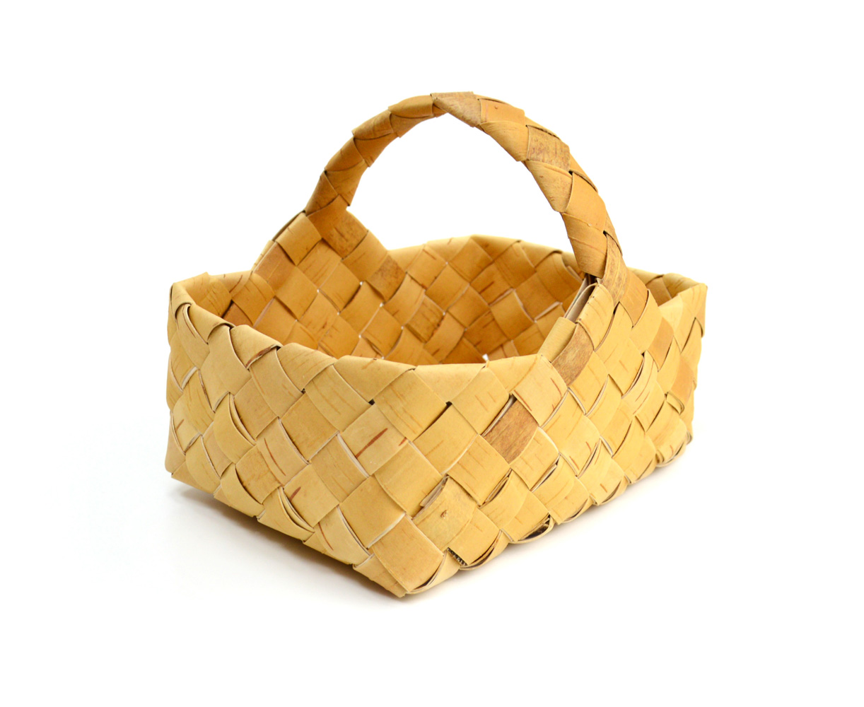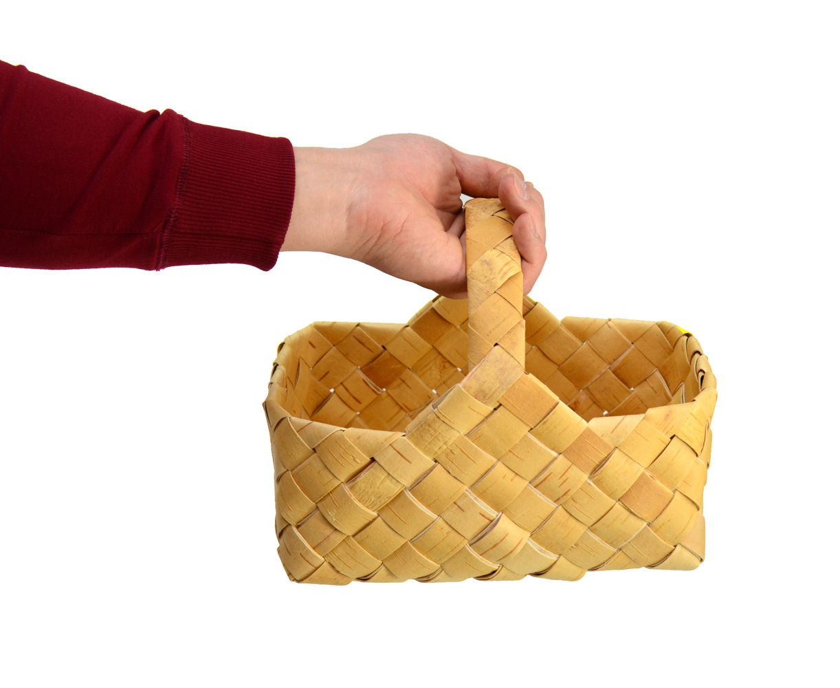 Лукошко из бересты средних размеров. Можно хранить все что захотите, например, конфеты, печенье или использовать в качестве декора.
