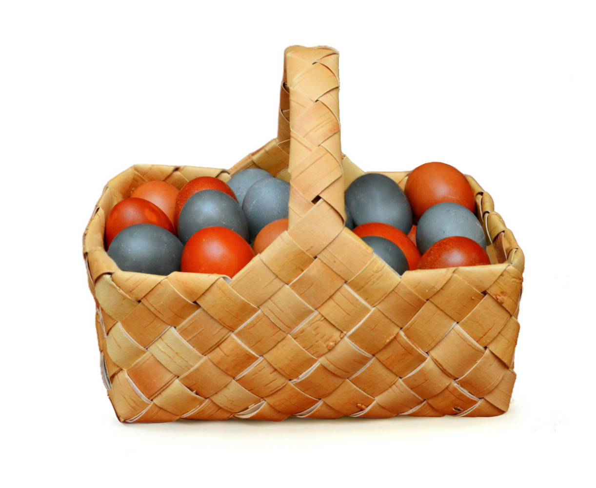 Также подойдет для украшения стола во время Пасхи, в лукошко входит около 30 яиц.