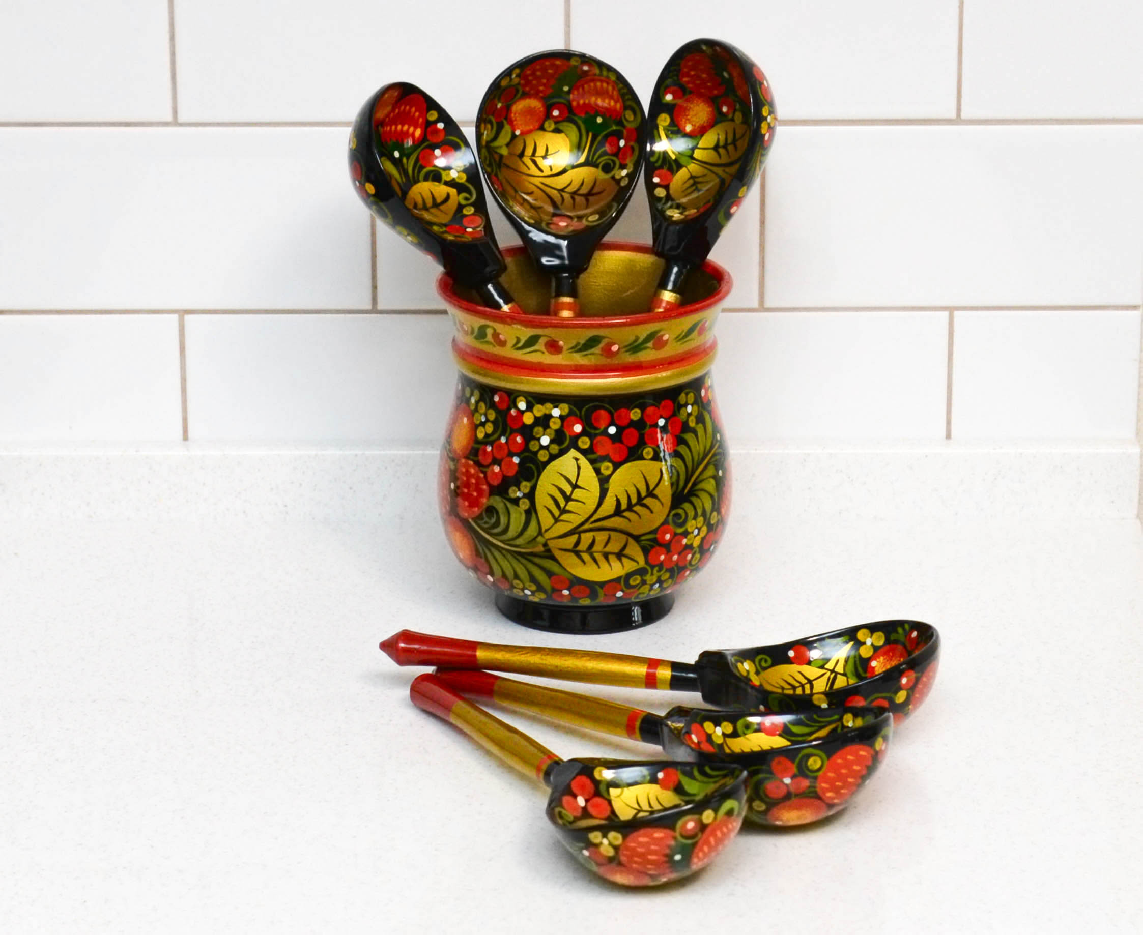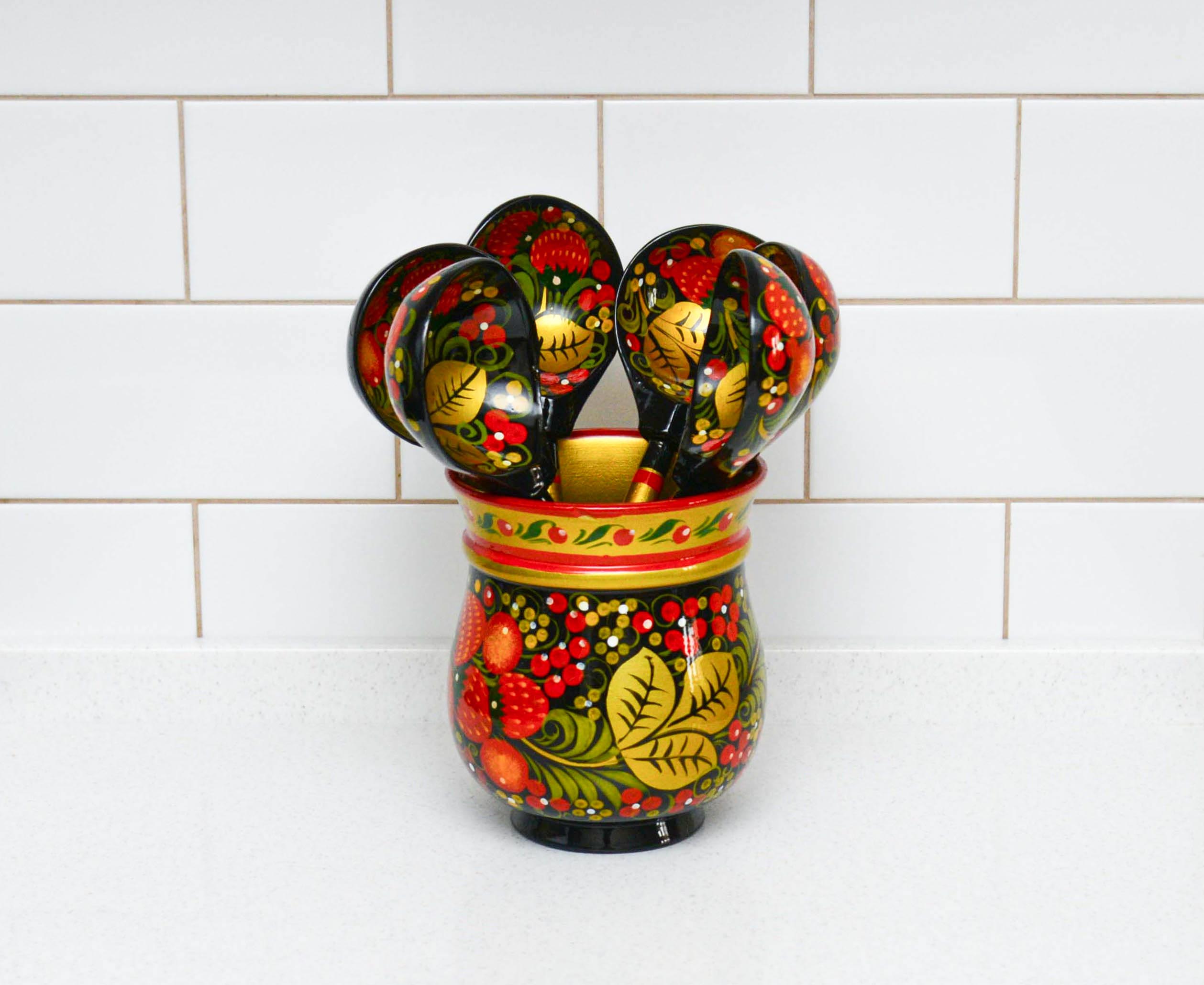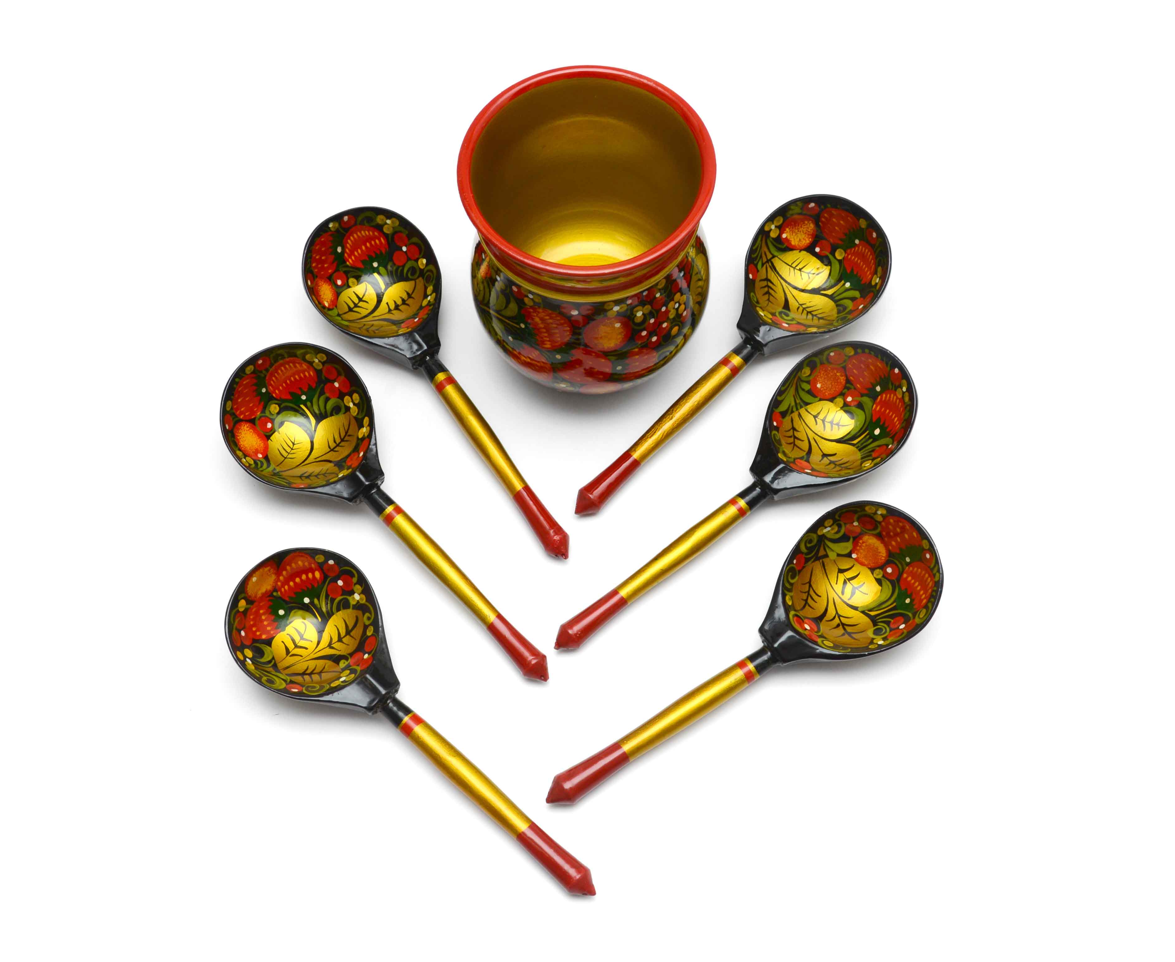 Набор расписной, состоит из бочонка и 6 больших ложек. Отлично впишется в любой интерьер и будет хорошим подарком для близких. Ложка деревянная с хохломской росписью. Подходит для ежедневного использования, можно кушать горячую и холодную пищу.