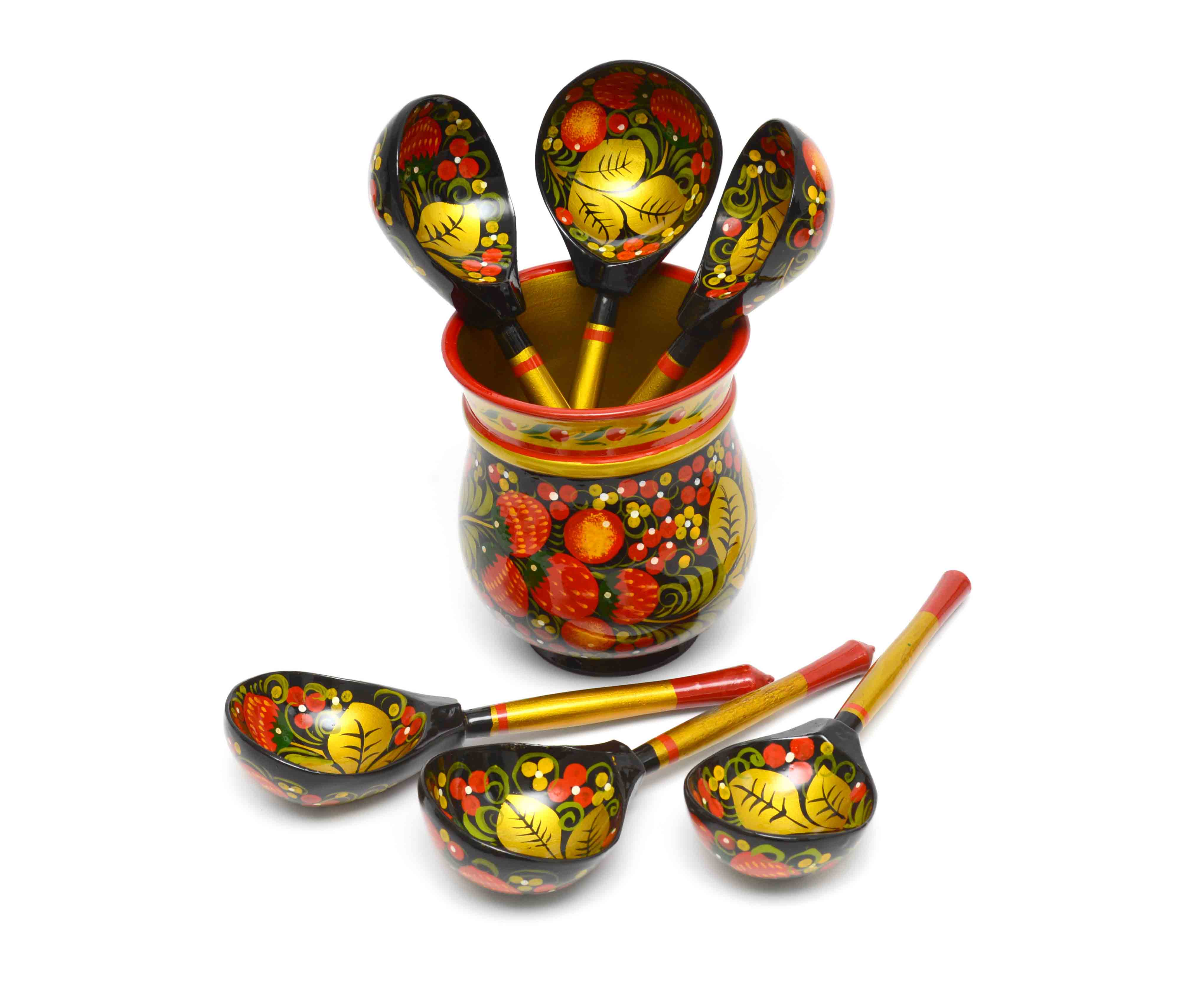 Набор деревянный хохлома ваза с ложками "Хозяюшка"