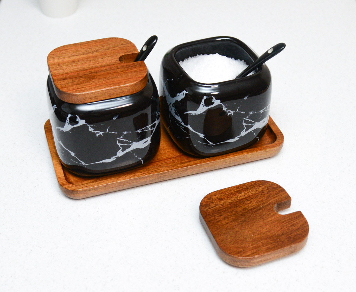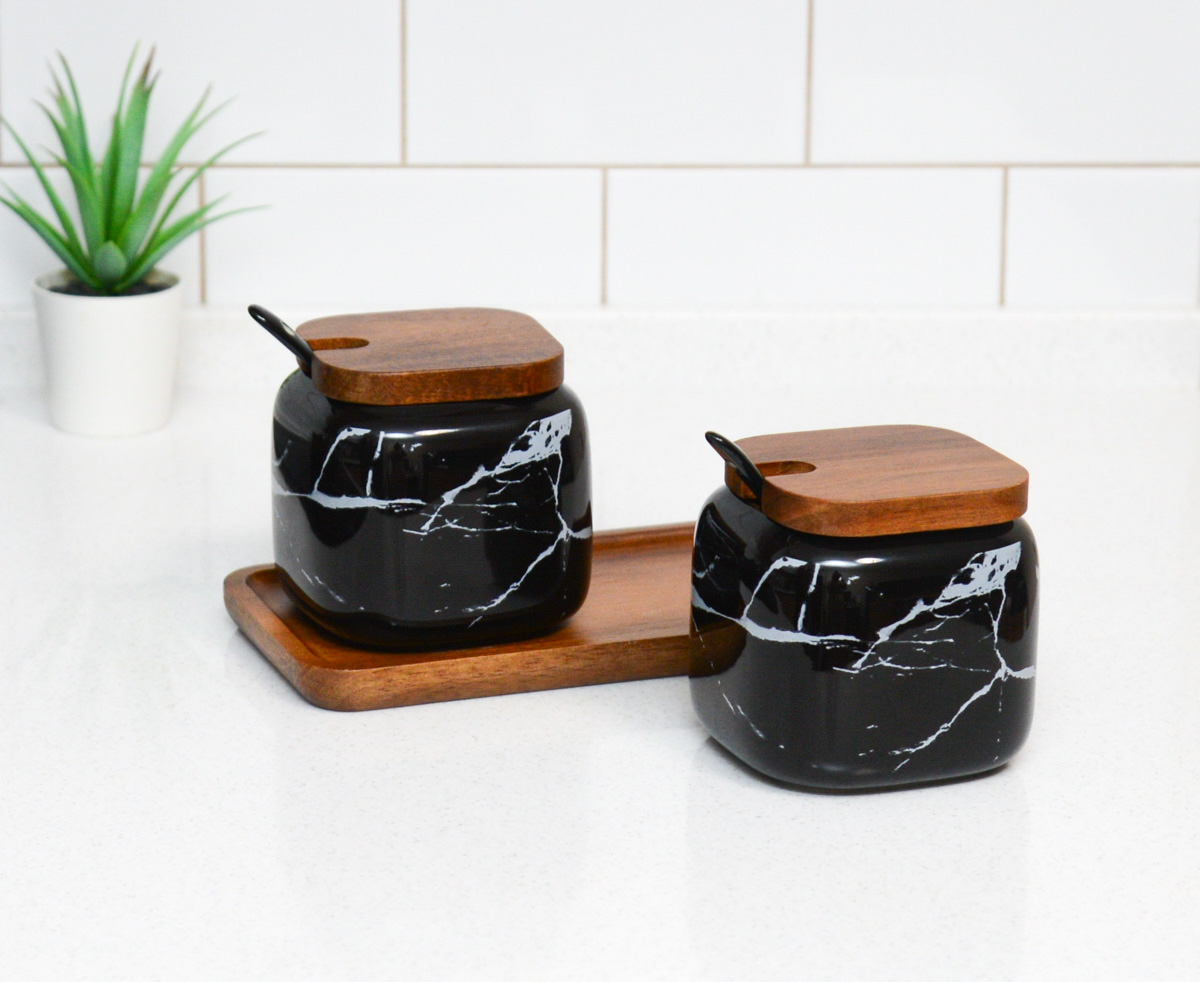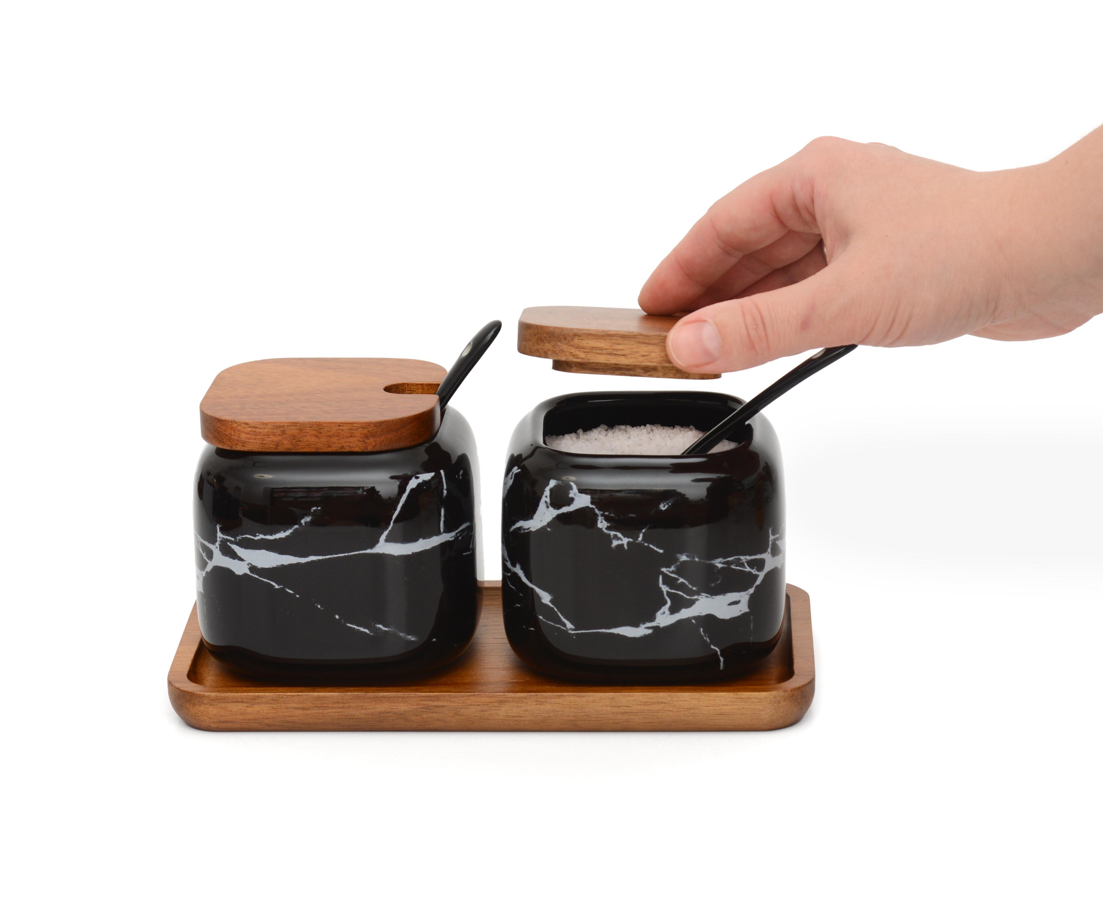 Набор керамических баночек для соли сахара специй "Черный мрамор"