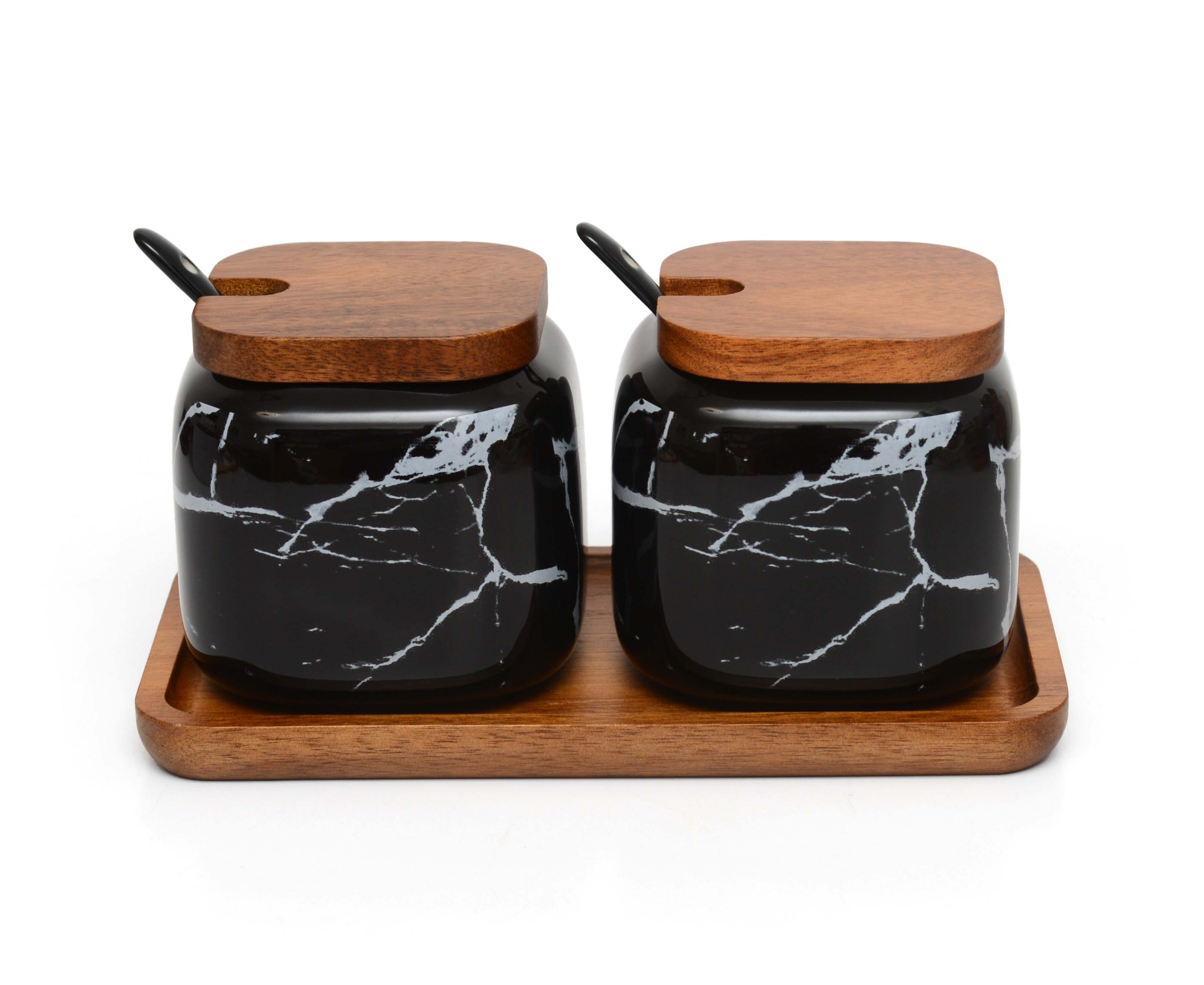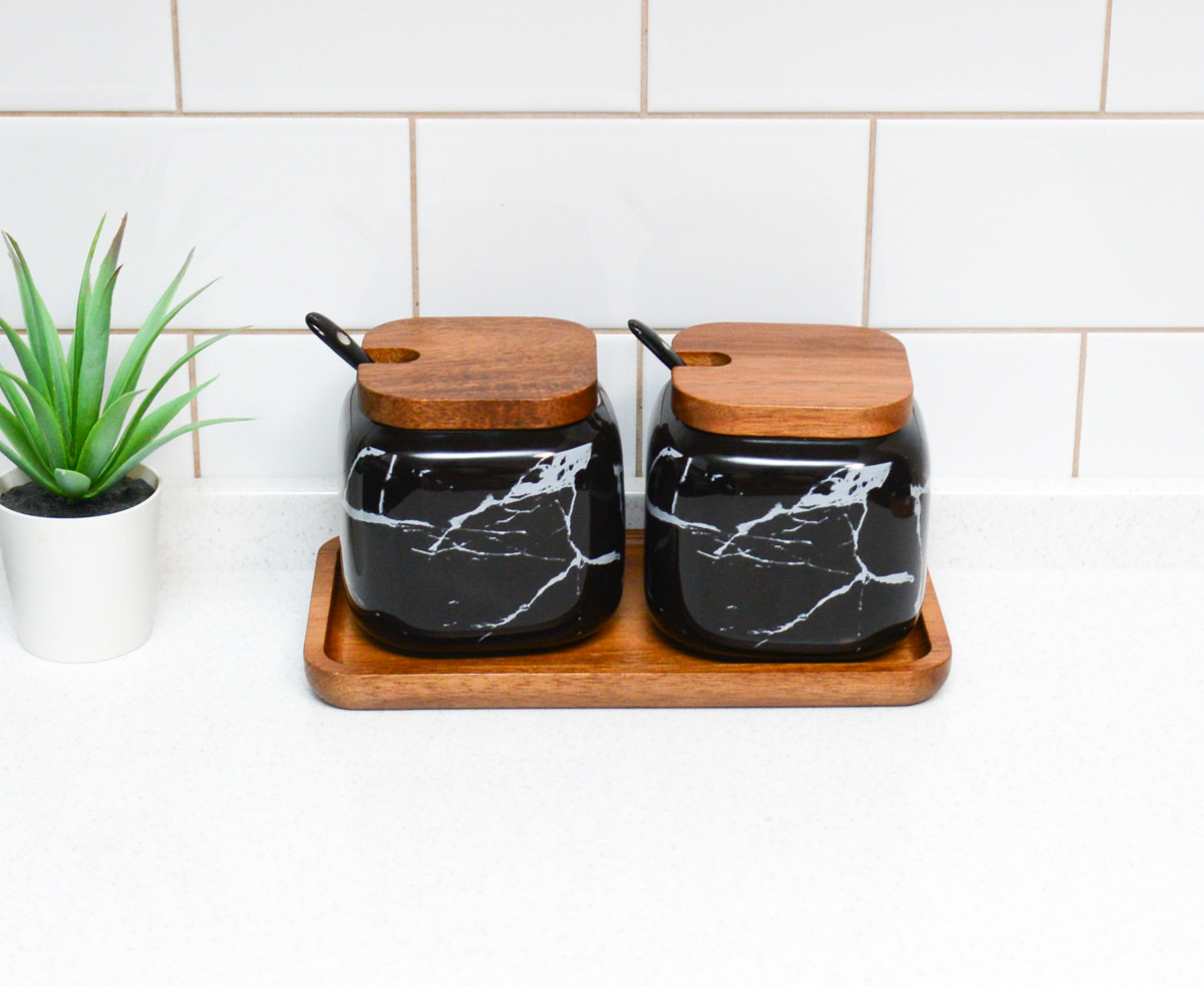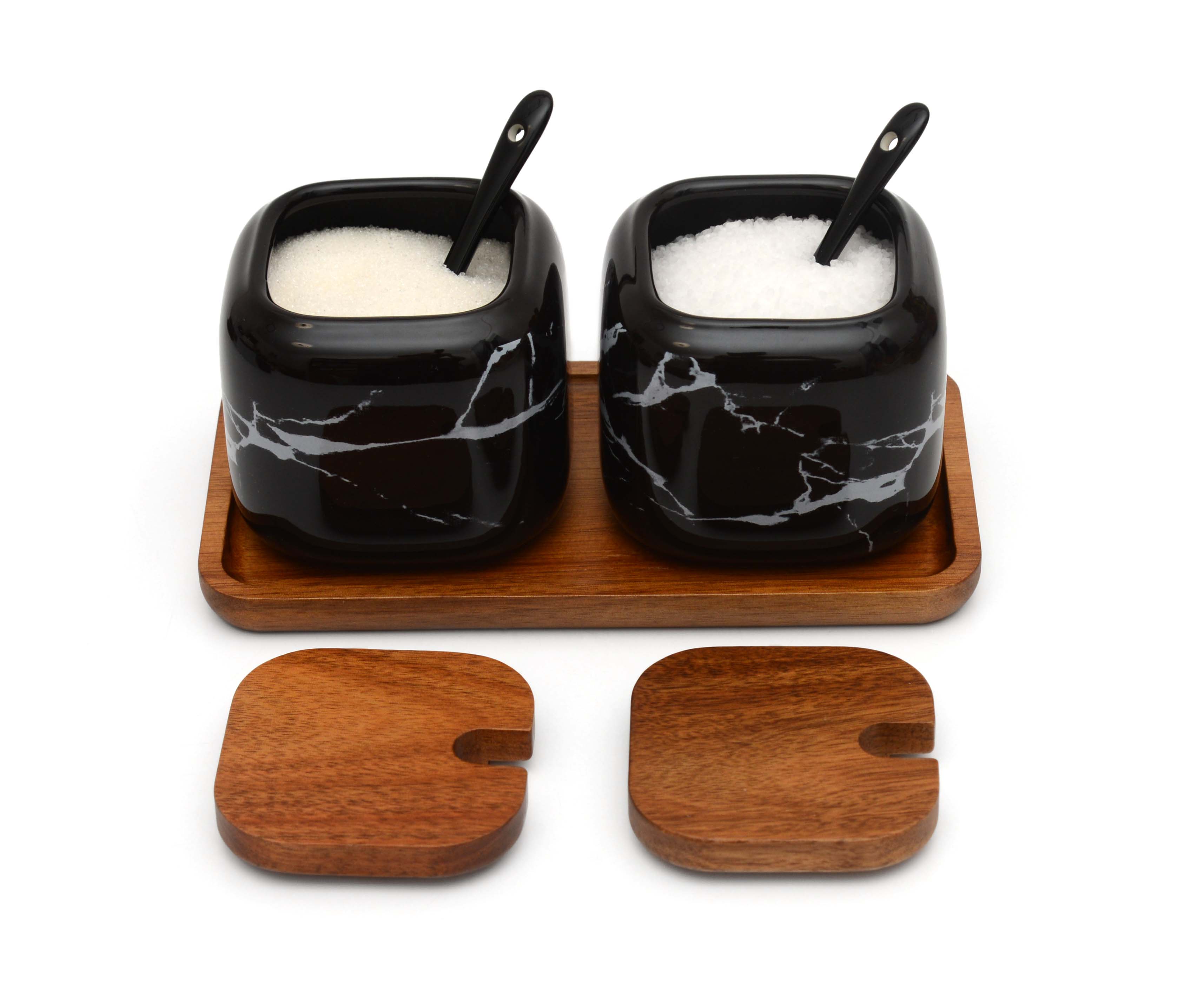 Набор керамических баночек для соли сахара специй "Черный мрамор"
