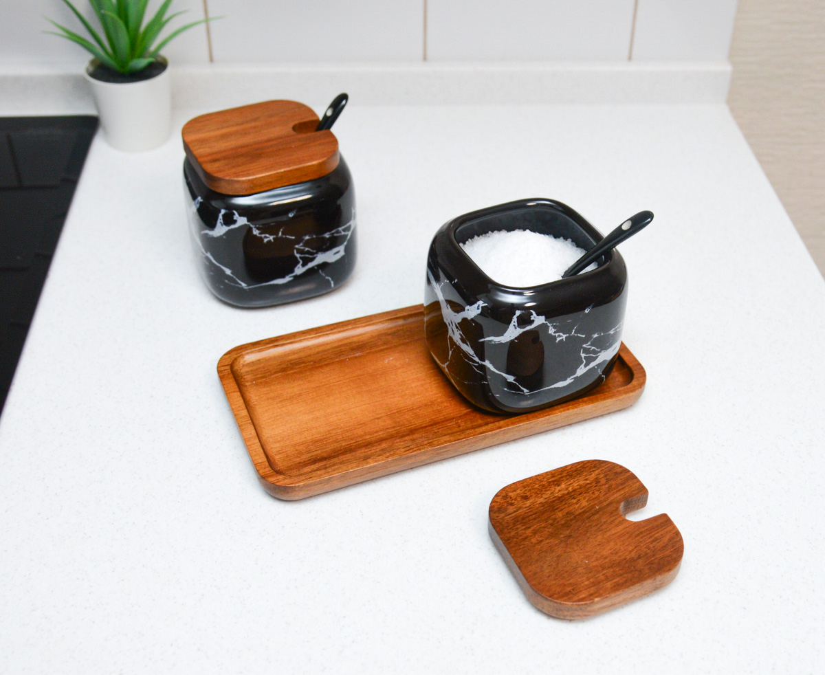 Лаконичный дизайн, благородные матовые цвета и сочетание керамики и дерева станут отличным решением для специй, приправ или любых других сыпучих продуктов (кофе, сахар), которые всегда необходимы под рукой.