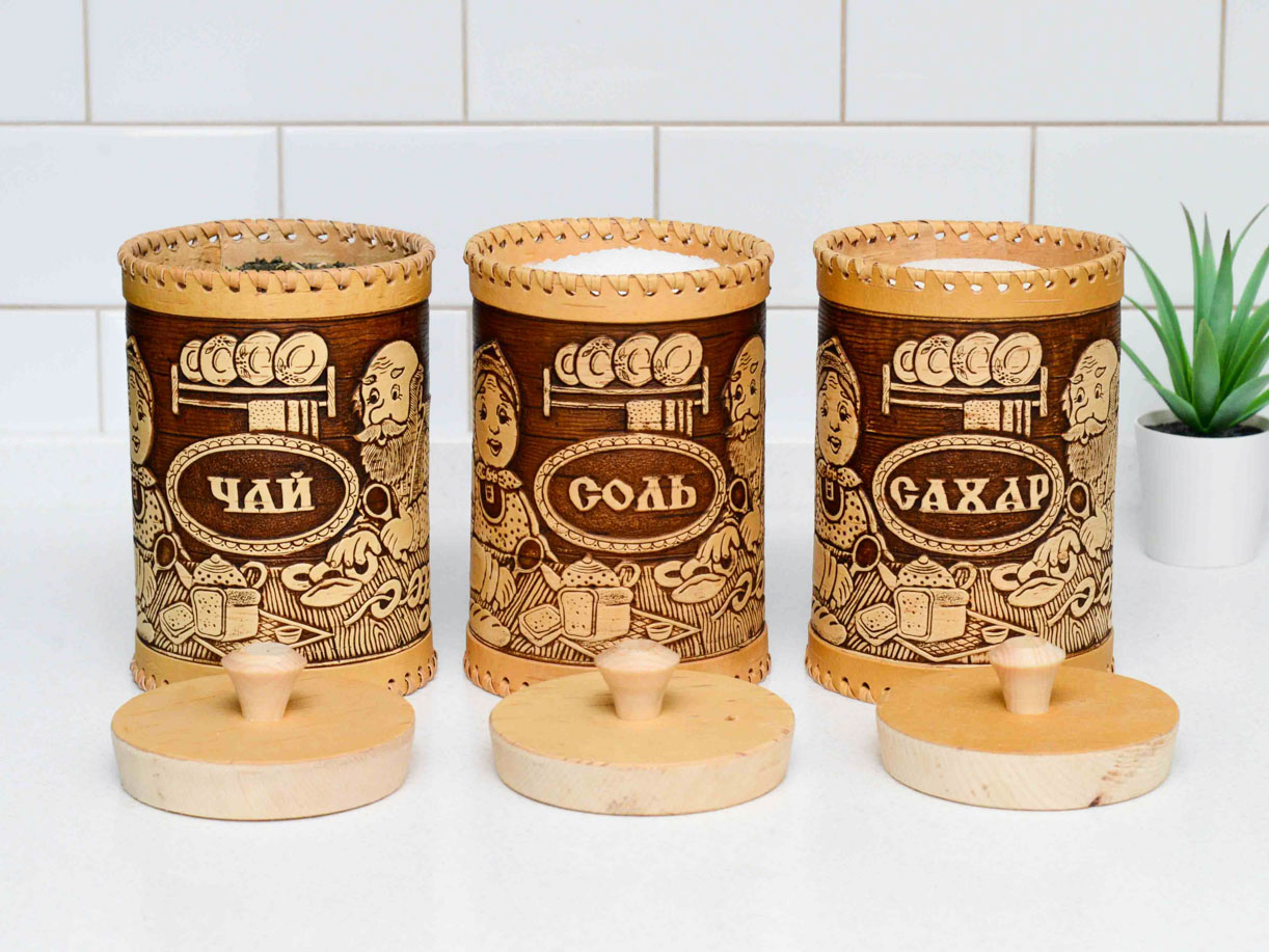 Туеса приятные на ощупь, с интересным рисунком. Такой набор украсит Вашу кухню или станет приятным подарком близким.