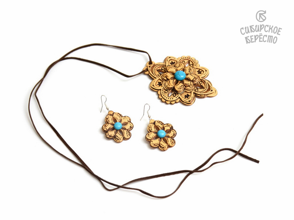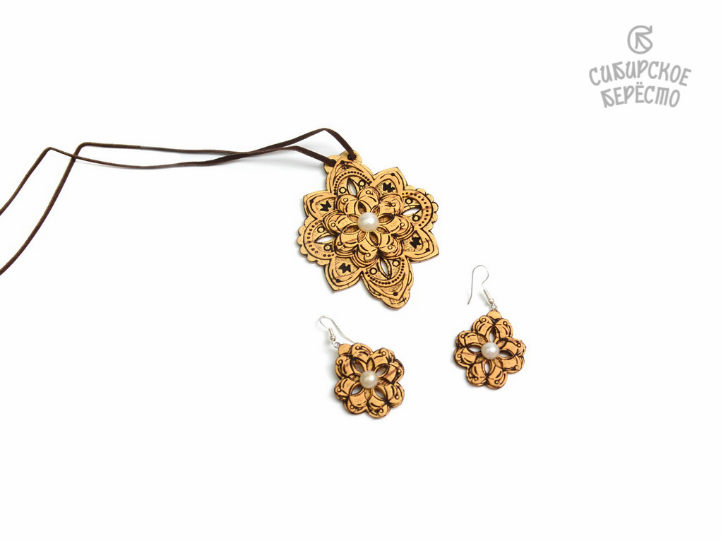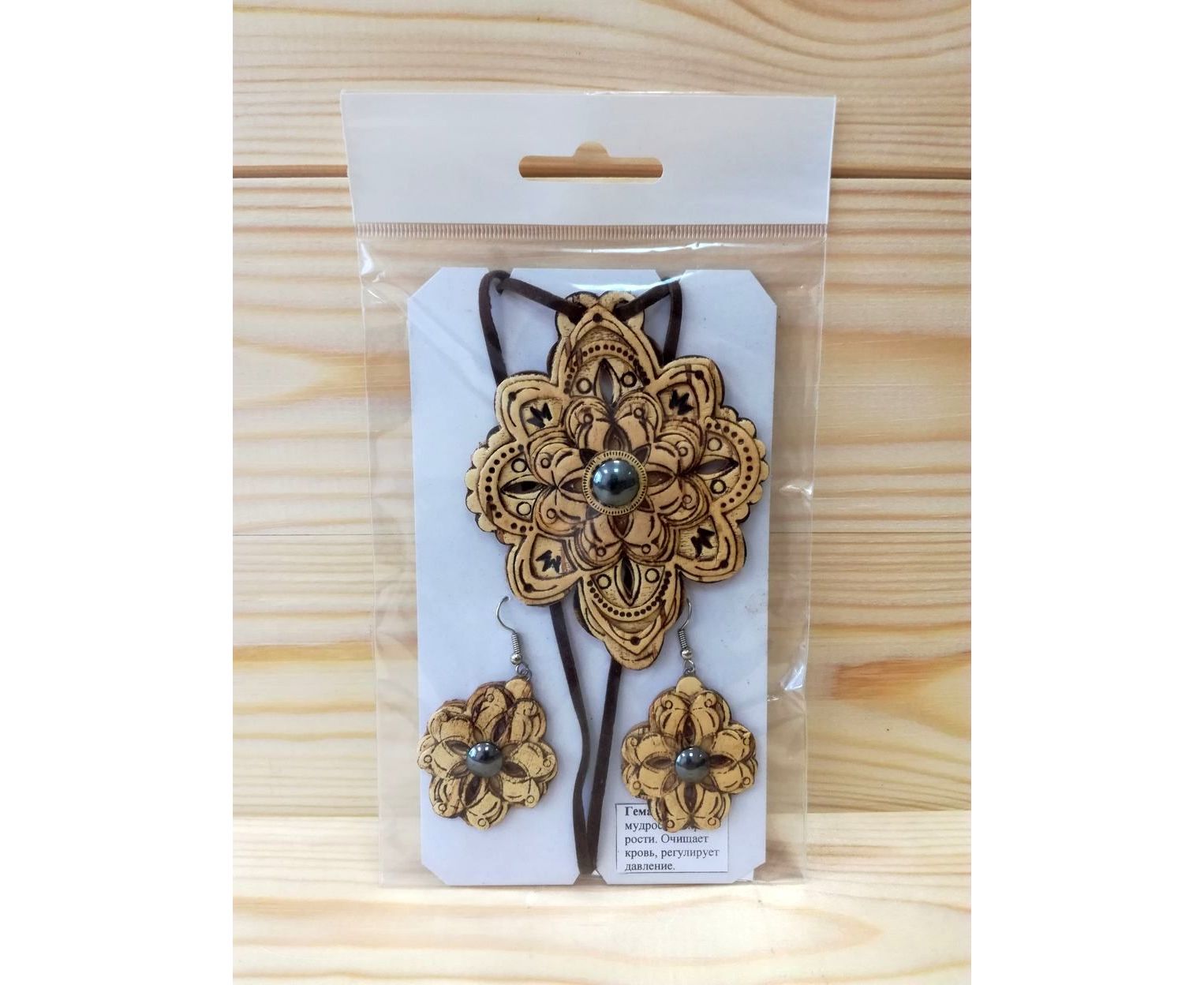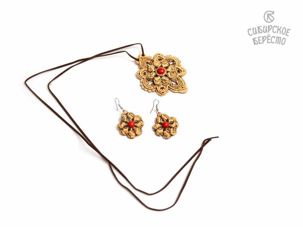 Набор украшений из бересты. В комплект входит подвеска и серьги – выполнен в технике резной бересты с тиснением и тонированием.