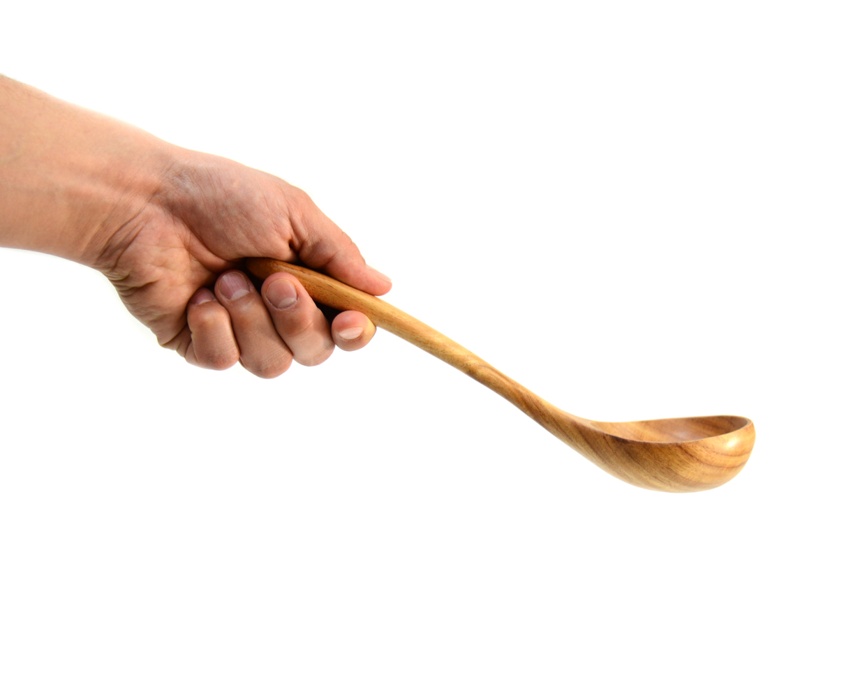 Половник деревянный средних размеров. Сделан из тикового дерева. Древесина тика износостойкая, устойчива к поражению плесенью. Лёгкий и приятный в использовании. Подойдет для небольшой кастрюли.