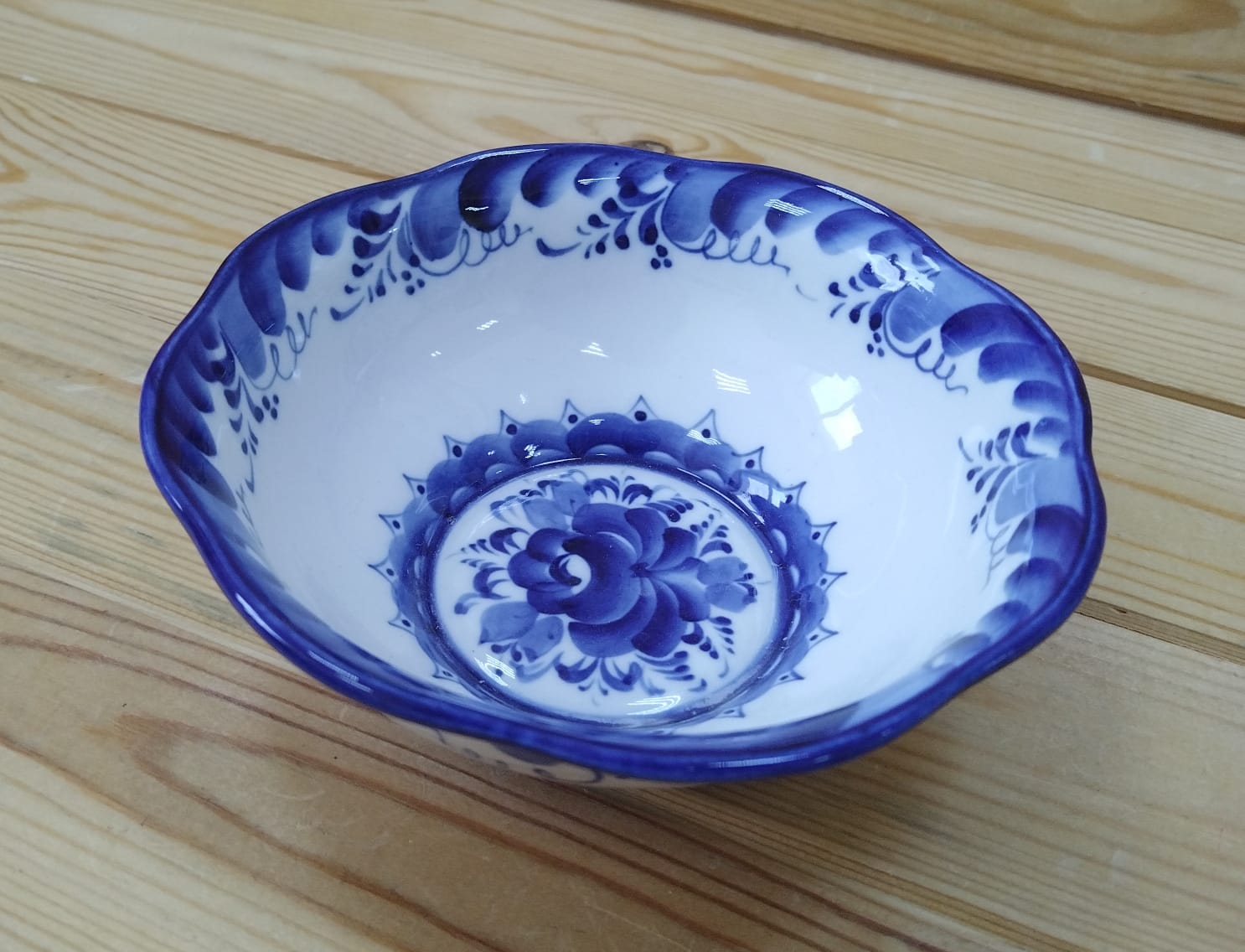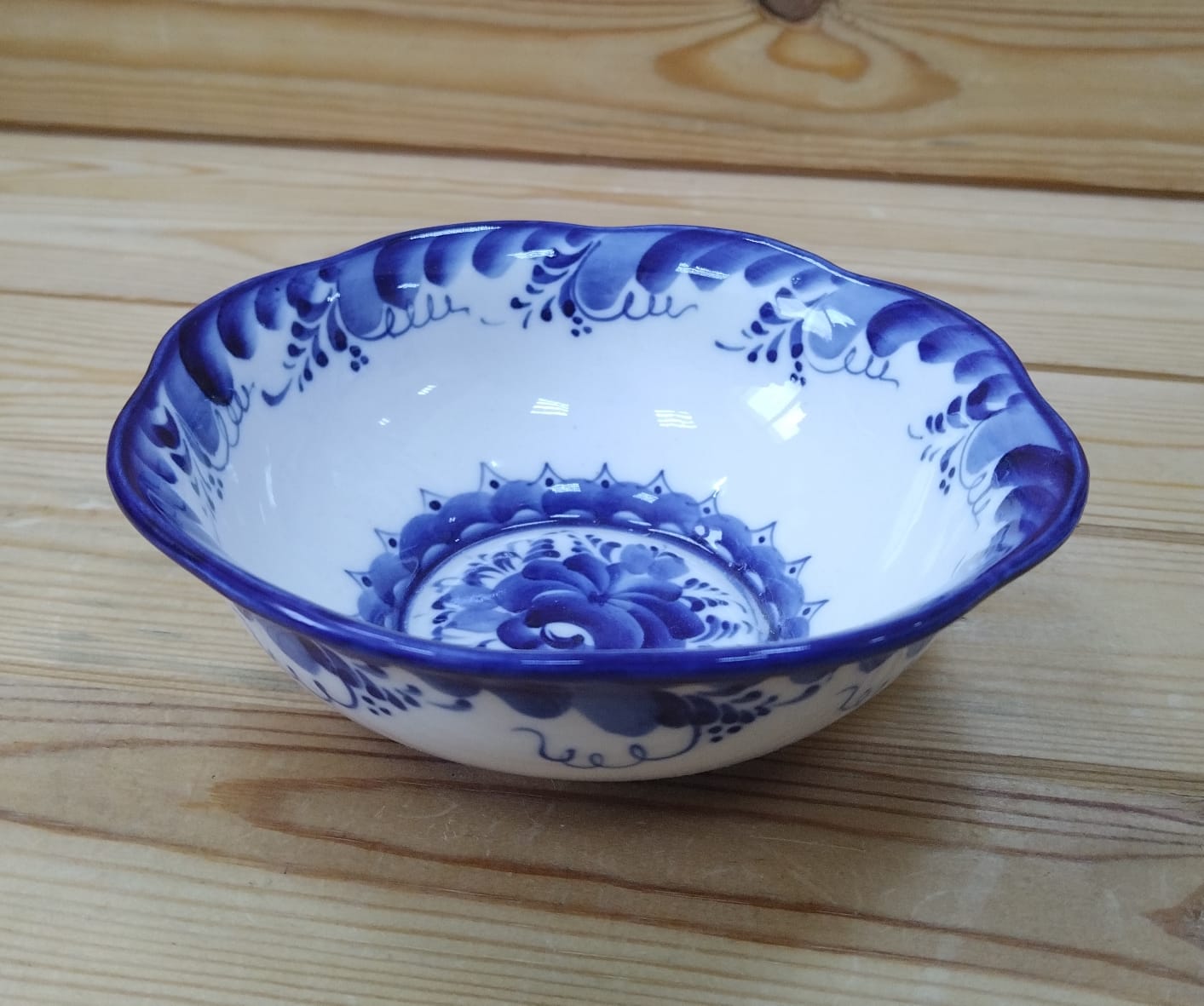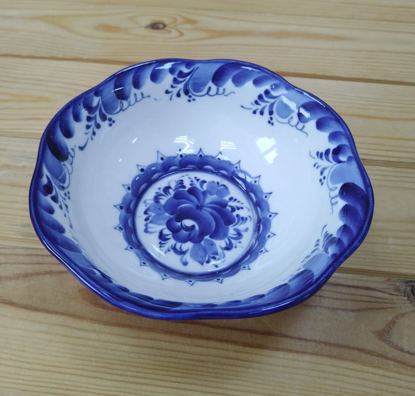 Салатник "Фигурный" гжель D16 см. Тарелка расписная