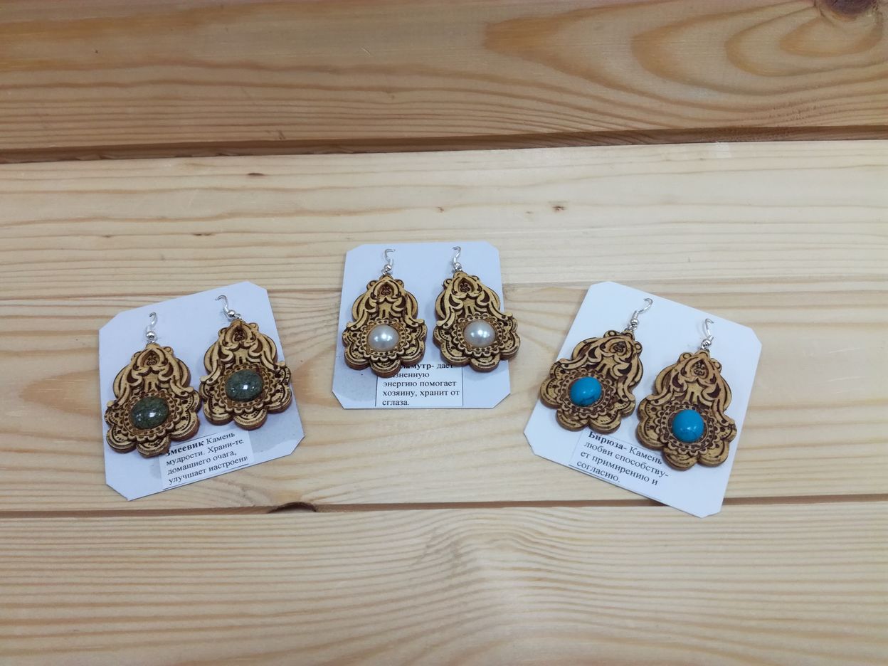 Красивые и элегантные серёжки из бересты с искусственным камнем.