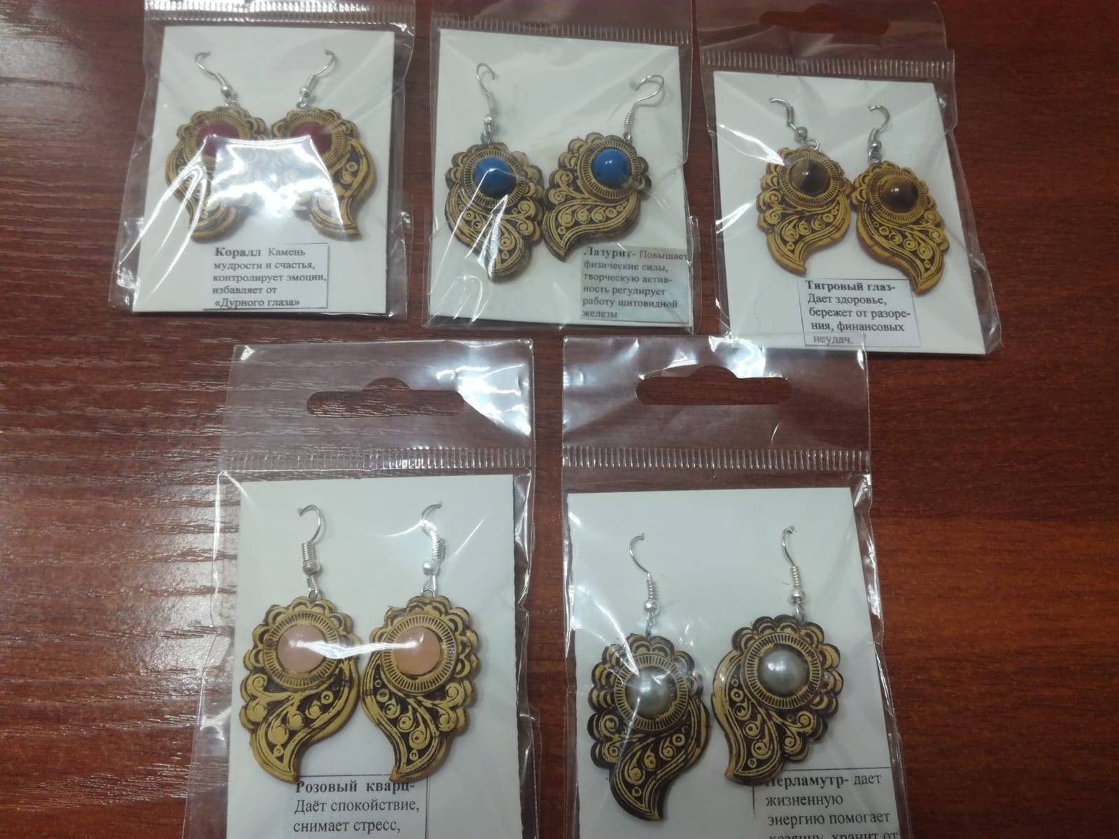 Серьги из бересты «Завиток» (камень в ассортименте)