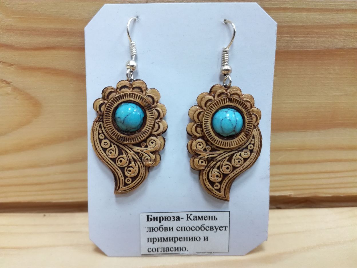 Оригинальные серьги из бересты с небольшим искусственным камнем.