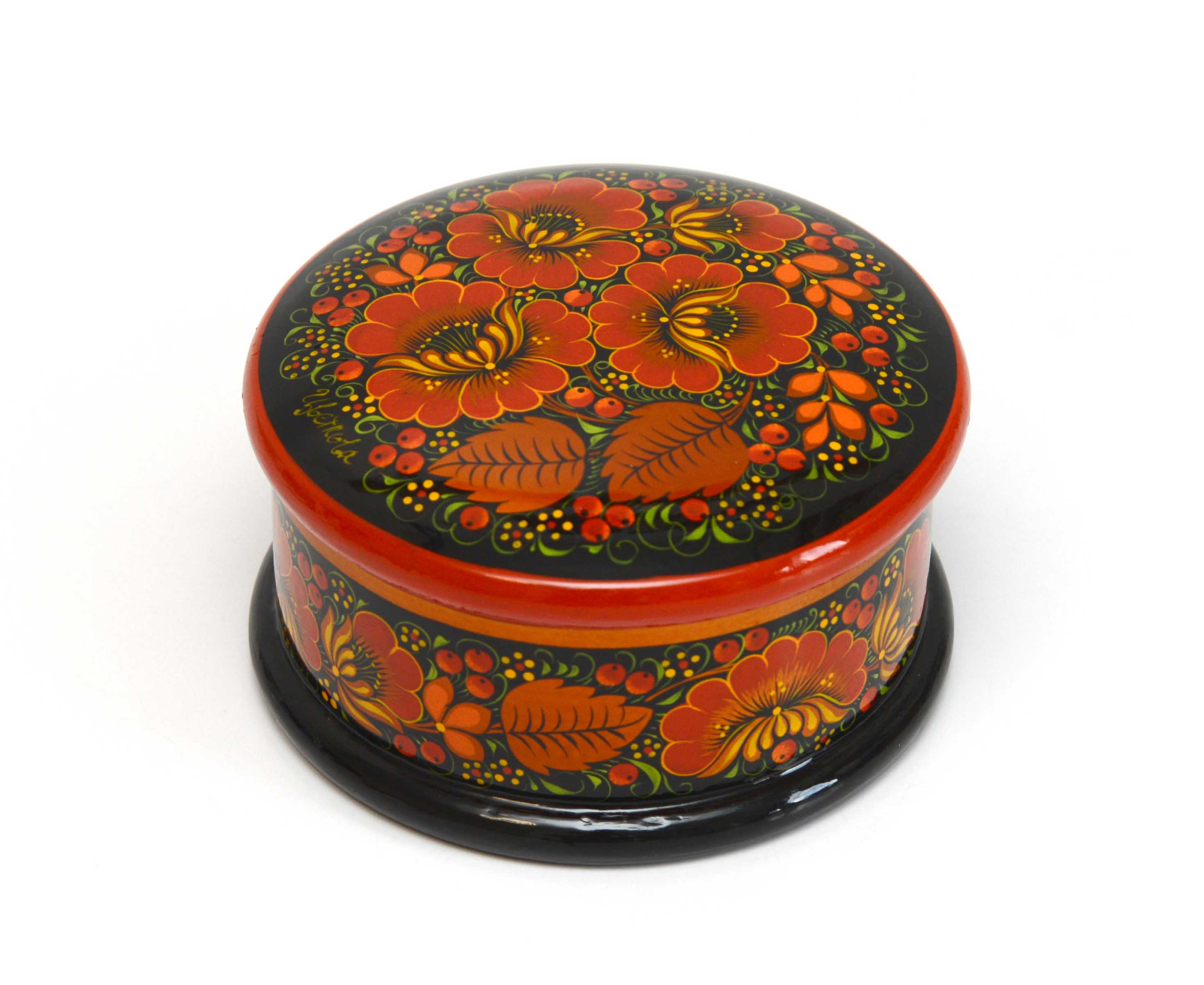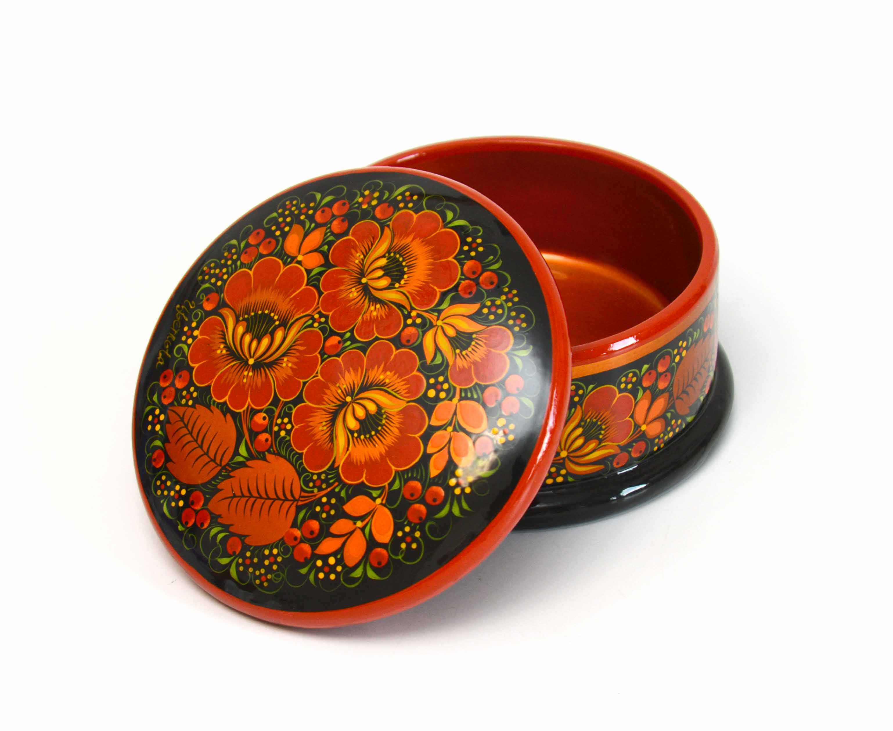 Красивая шкатулка с хохломской росписью. Выточена из цельного дерева - липа.
