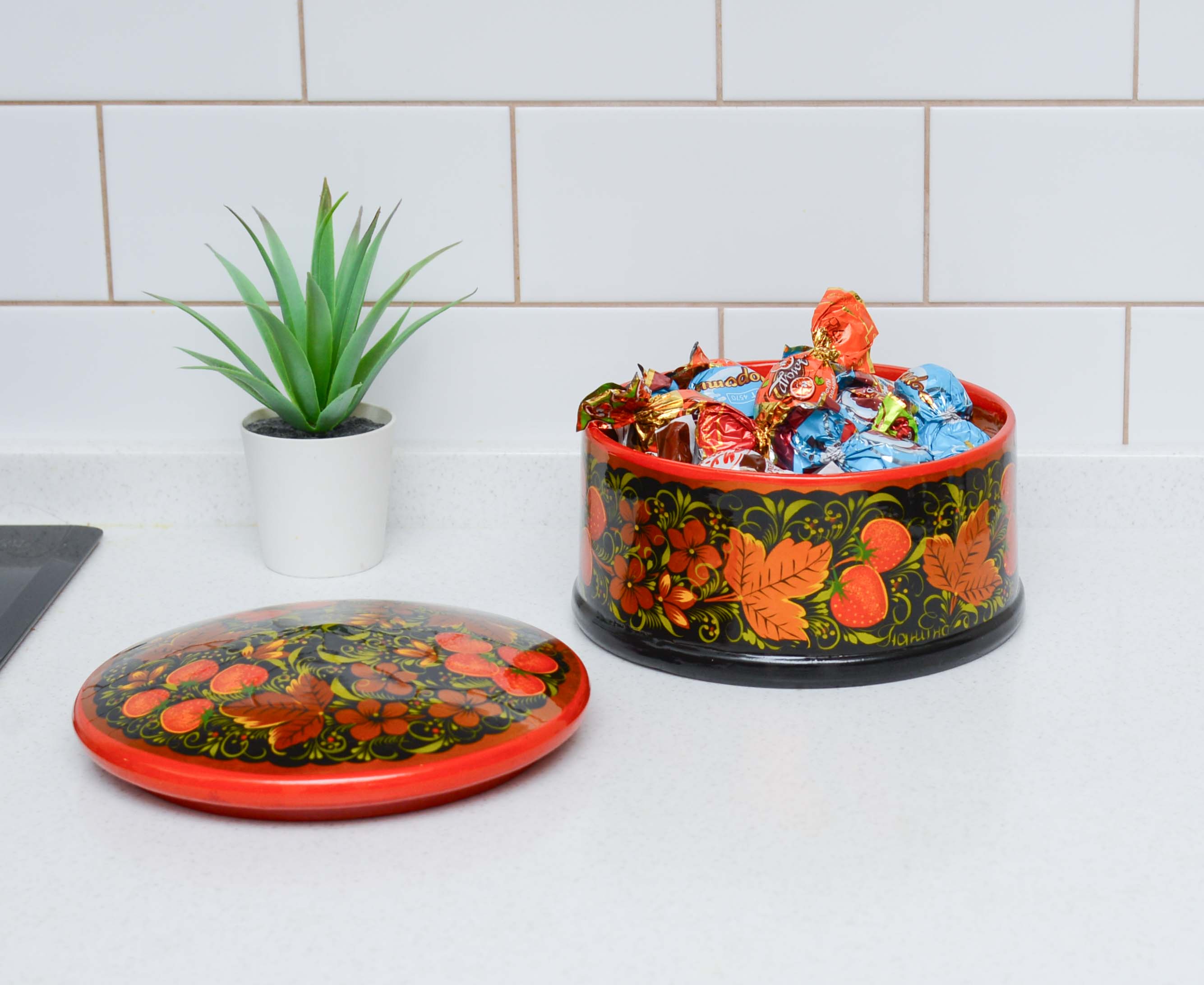 Посуда с хохломской росписью будет очень красиво смотреться в любом интерьере. Её используют по прямому назначению, а не только для декора. Роспись делается мастерами вручную. Лаковое покрытие сохраняет яркость и насыщенность цвета, придает прочность изделию. Все материалы экологичны и натуральны. Всё выполнено по фабричным технологиям.