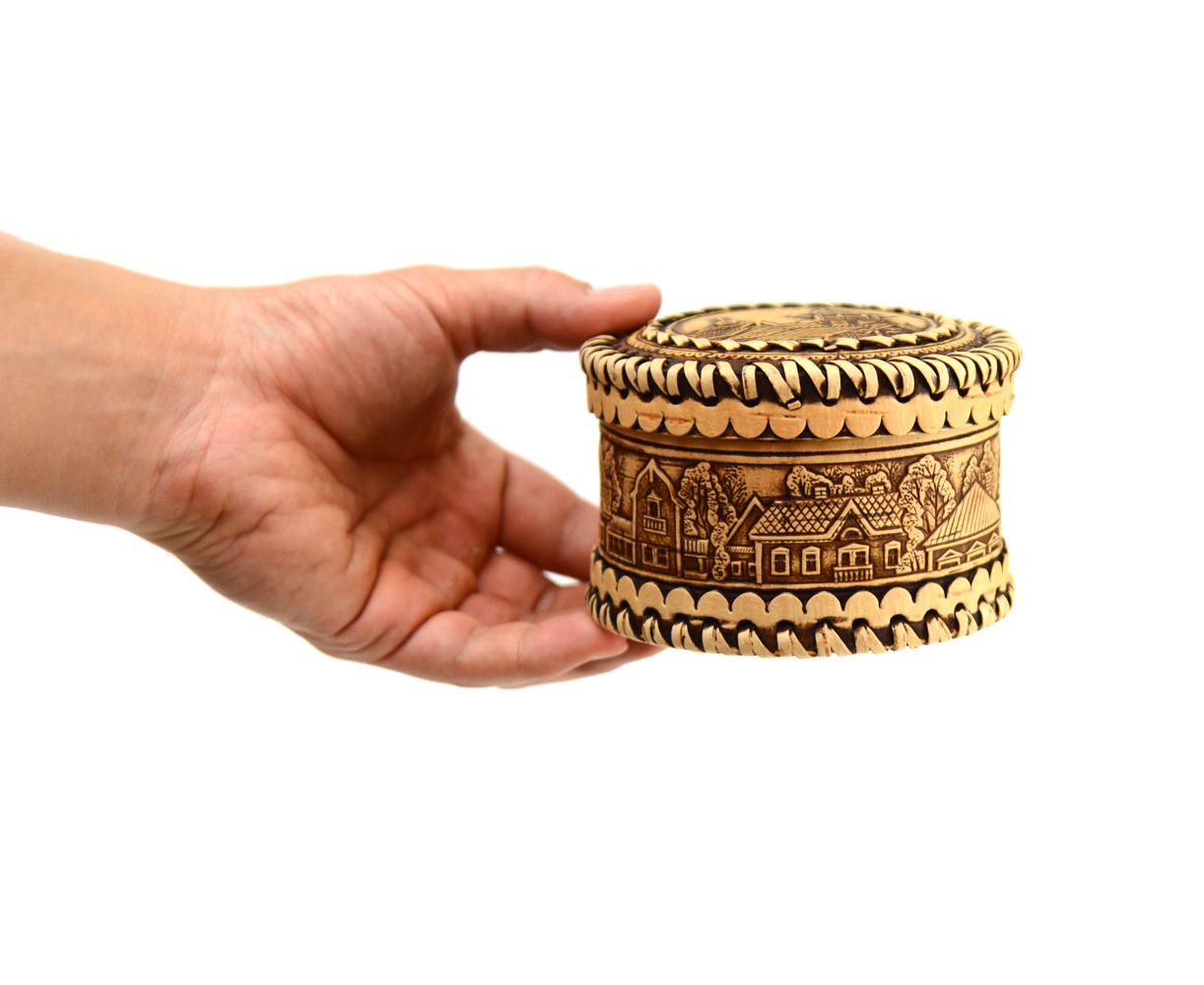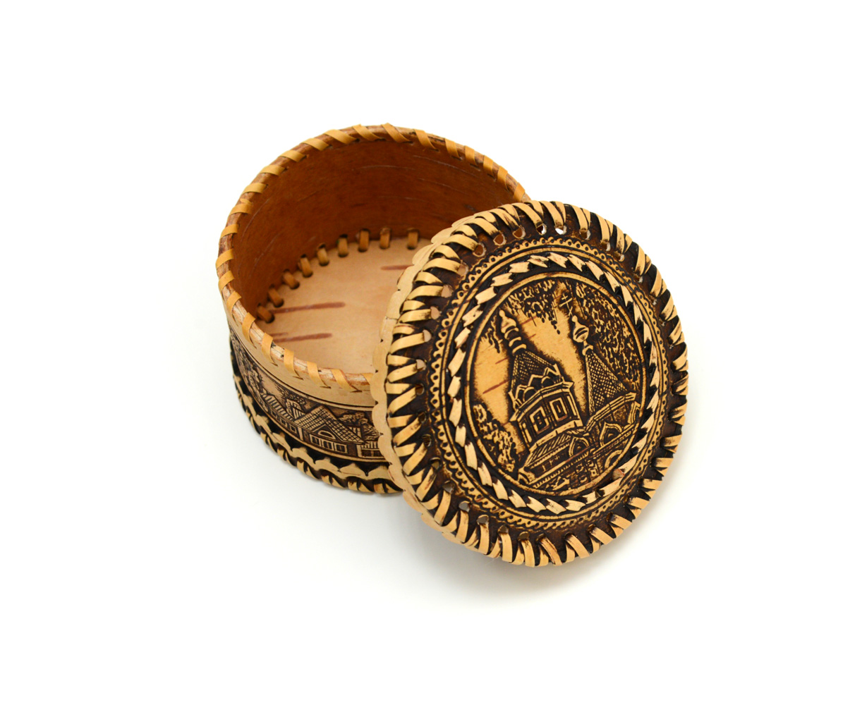 Шкатулка из бересты небольших размеров. Рисунок на крышке в ассортименте - отправляем тот, что есть в наличии. Если понравился какой то определенный рисунок, напишите об этом в комментарии к заказу.
