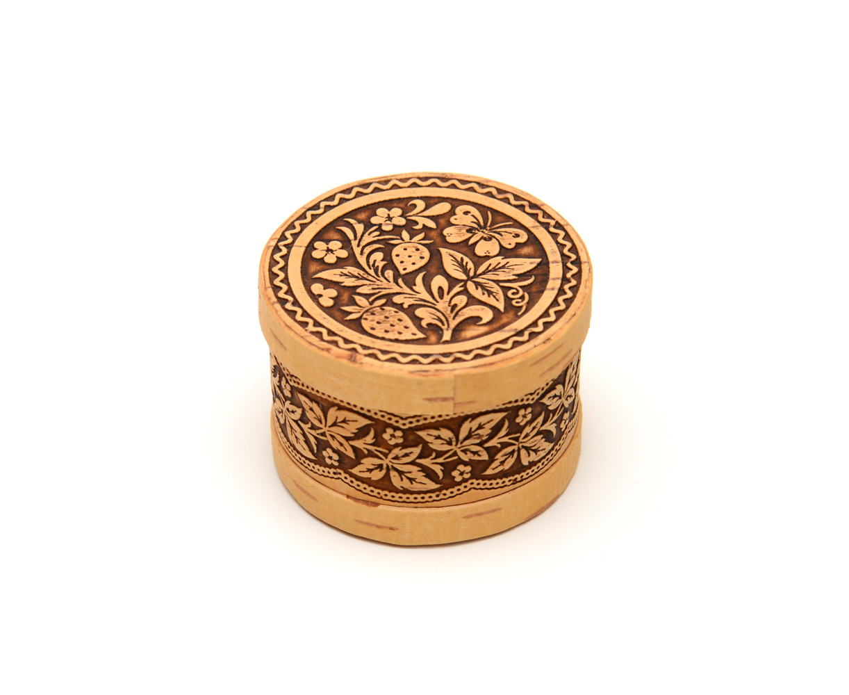 Шкатулка из бересты маленькая бижутерка "Клубничка" D6,5 H4,5