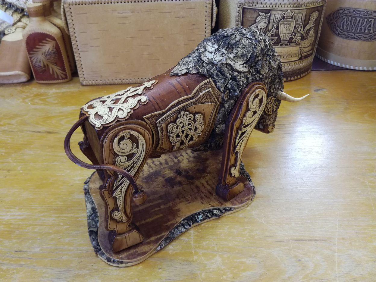 Статуэтка быка из бересты – отличный подарок ценителям ручной работы, изделий из бересты.