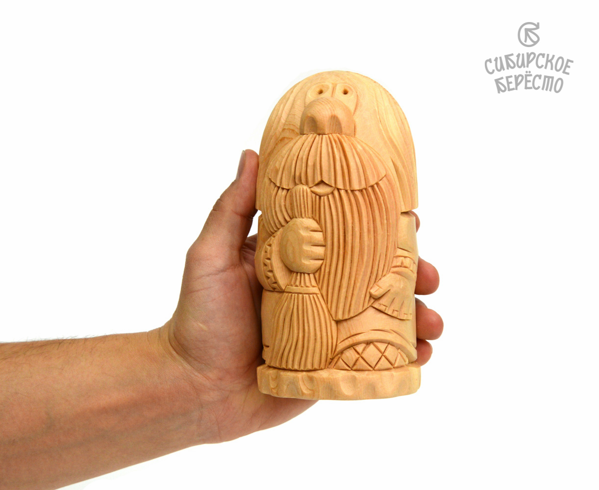 Статуэтка большая из кедра "Домовой с веником"