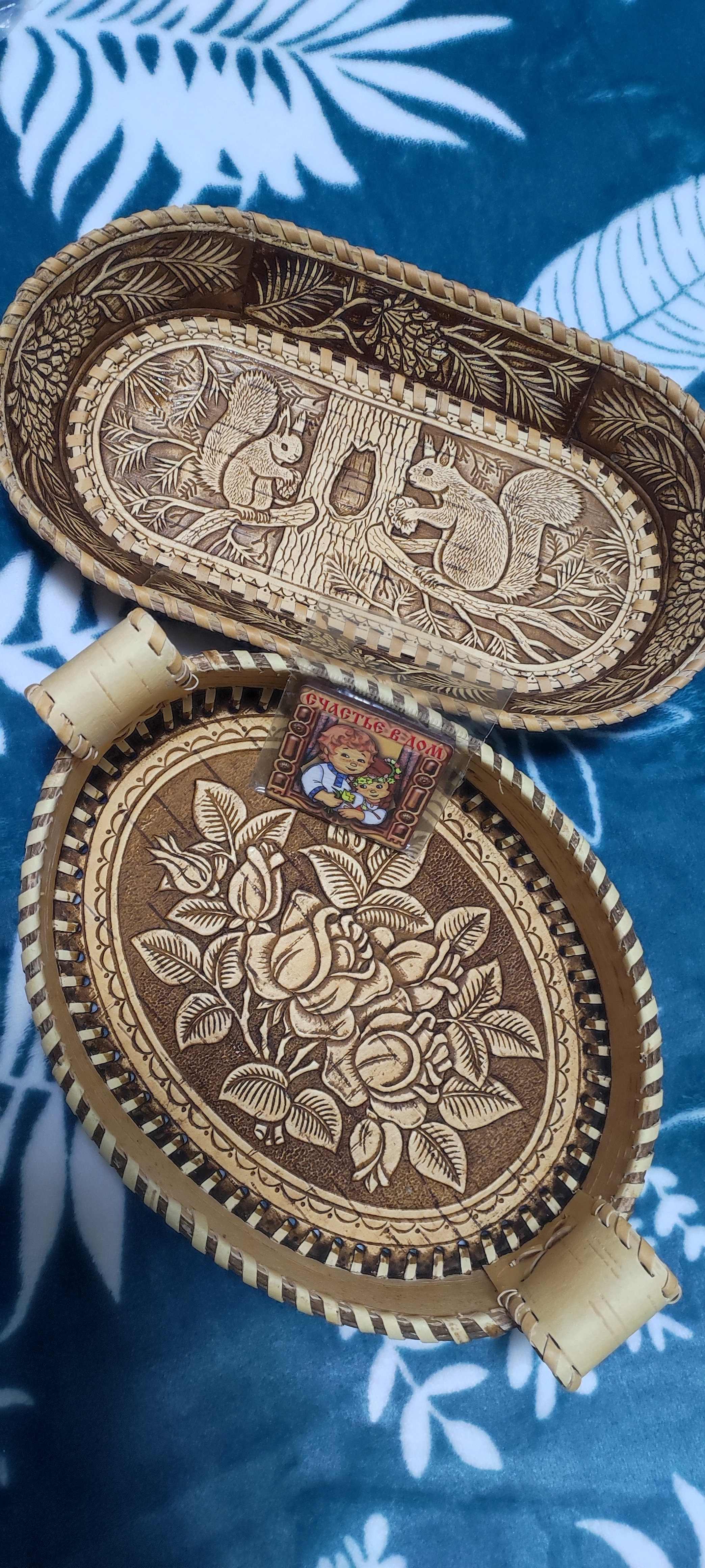 Сухарница из бересты небольших размеров. Подойдет для печенья, конфет, орехов и проч.