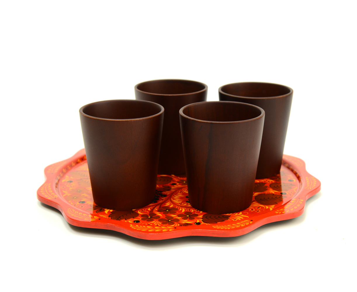 Деревянный поднос средних размеров с хохломской росписью. Во время чаепития на него можно ставить пиалы, кружки. Можно выкладывать фрукты, разные закуски и т.д.