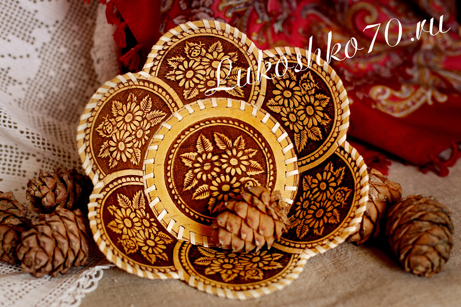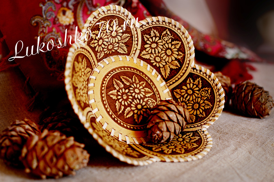 Тарелка с лепестками из бересты – отличное украшение стола.