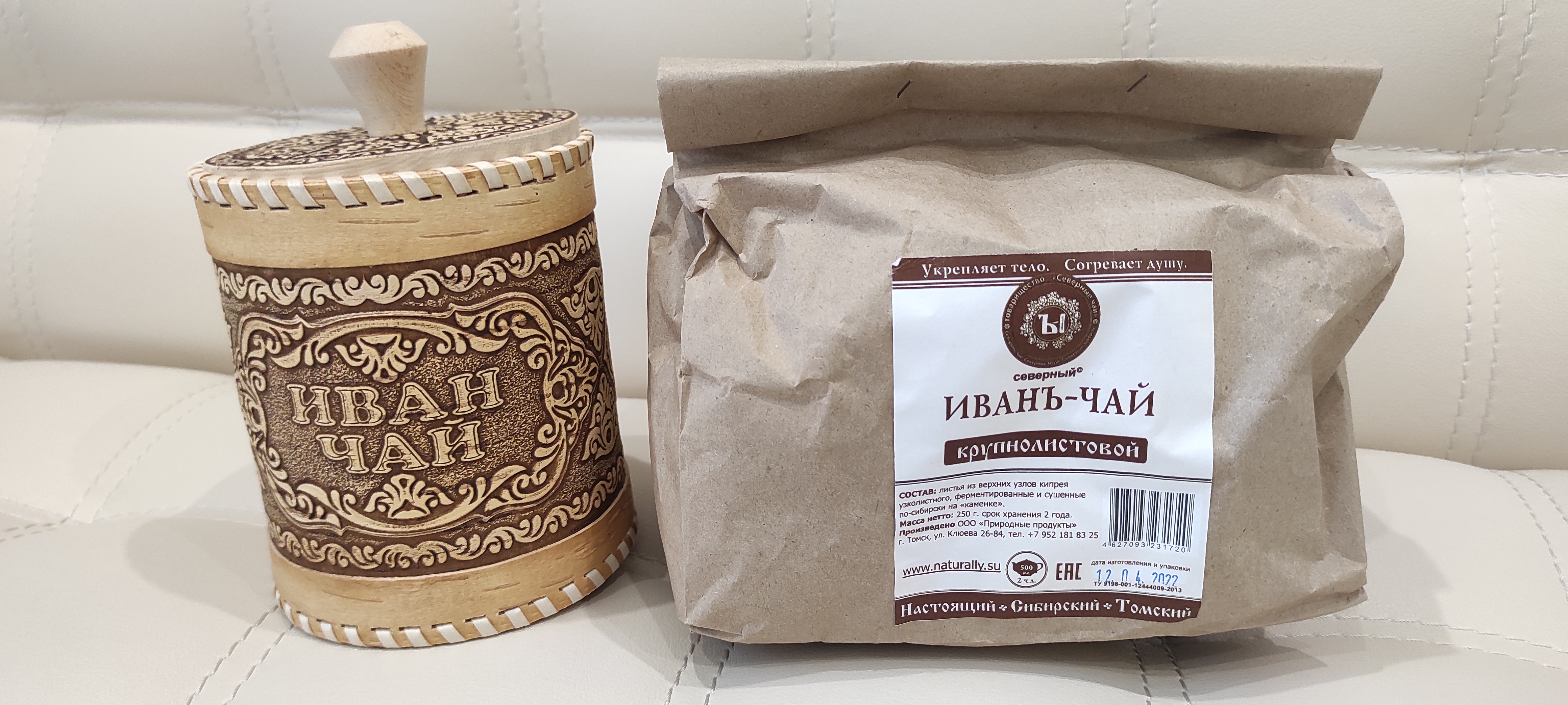 Отличный набор для любителей иван-чая. В таком красивом берестяном туеске очень удобно хранить чай.