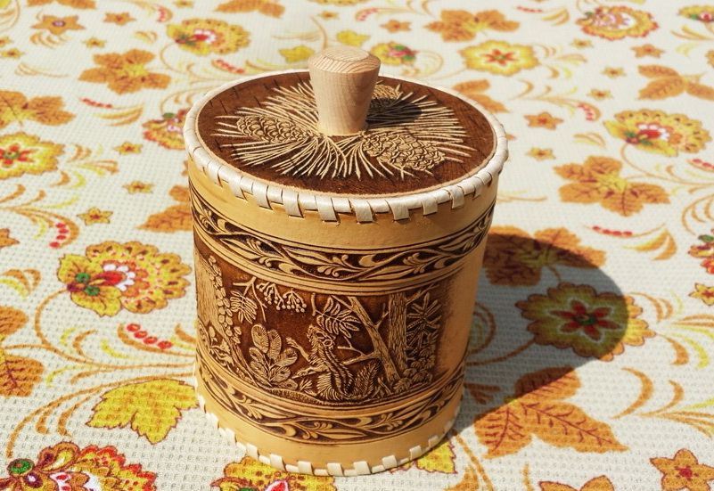 Береста – это натуральный экологически чистый материал. Туеса, изготовленные из бересты, станут прекрасной заменой стеклянным и пластмассовым баночкам. Продукты хранимые в берестяных изделиях долго не портятся и сохраняют свои вкусовые качества.
