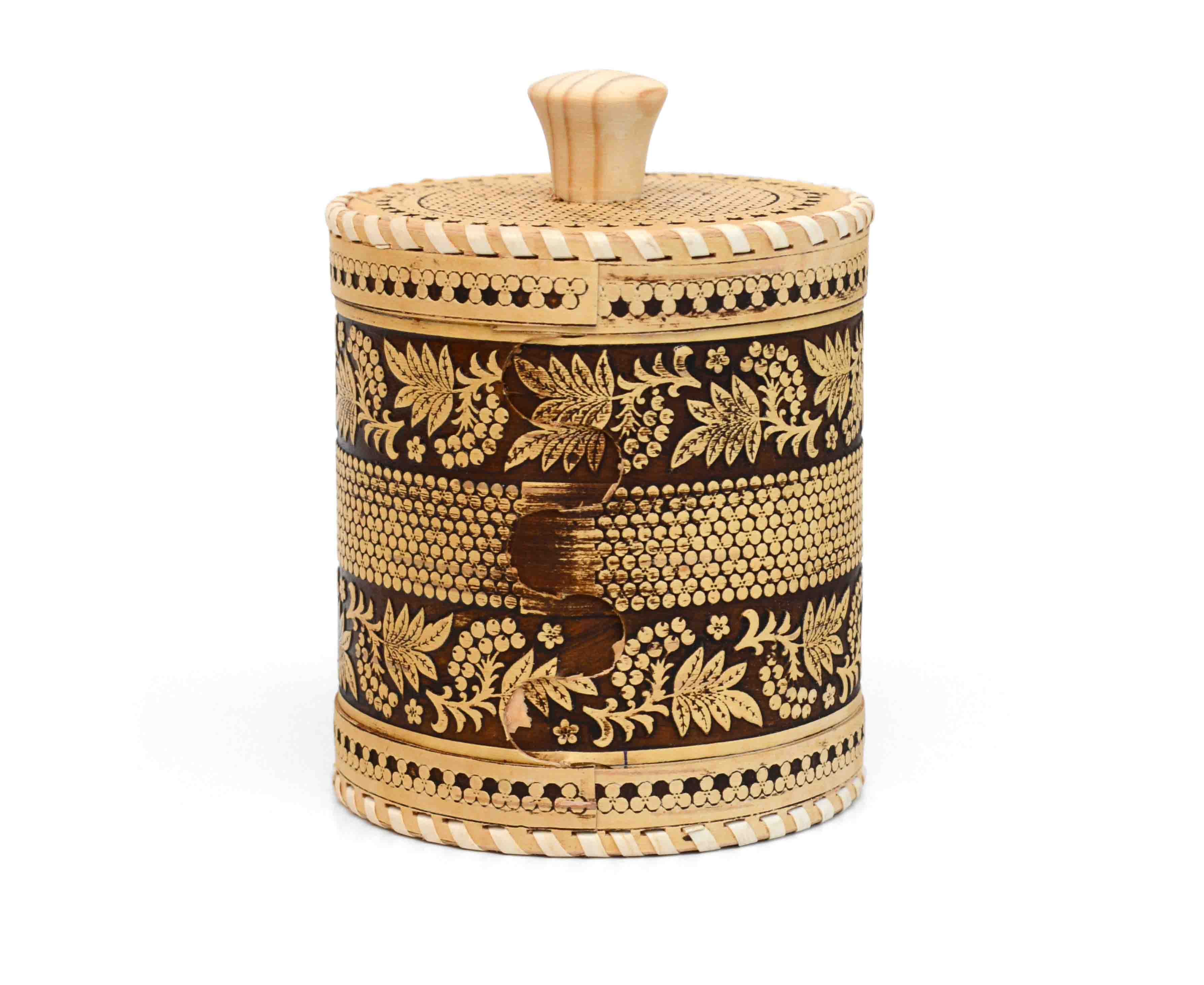 Красивый и практичный туесок для хранения чая. Крышка и донышко деревянные.