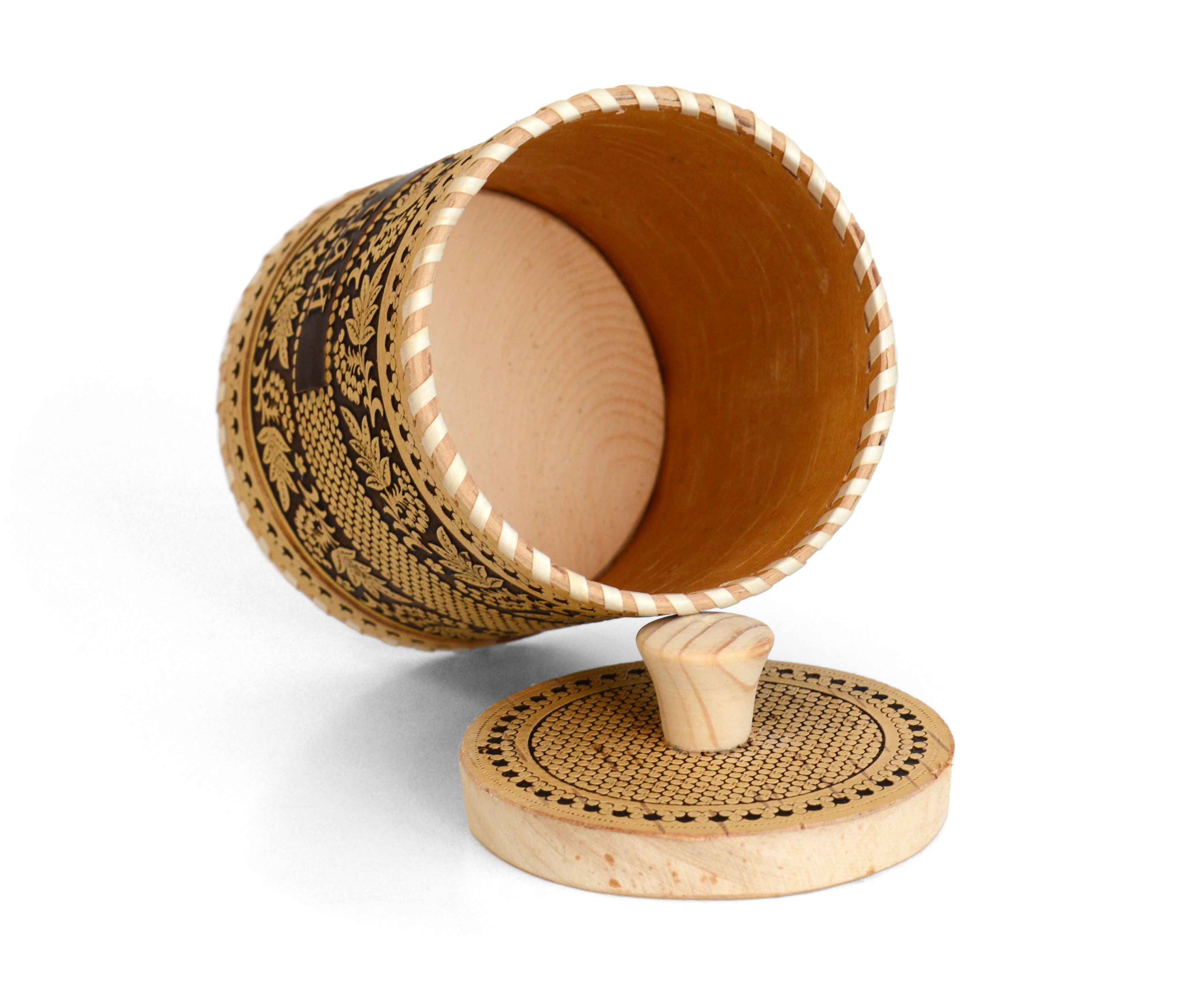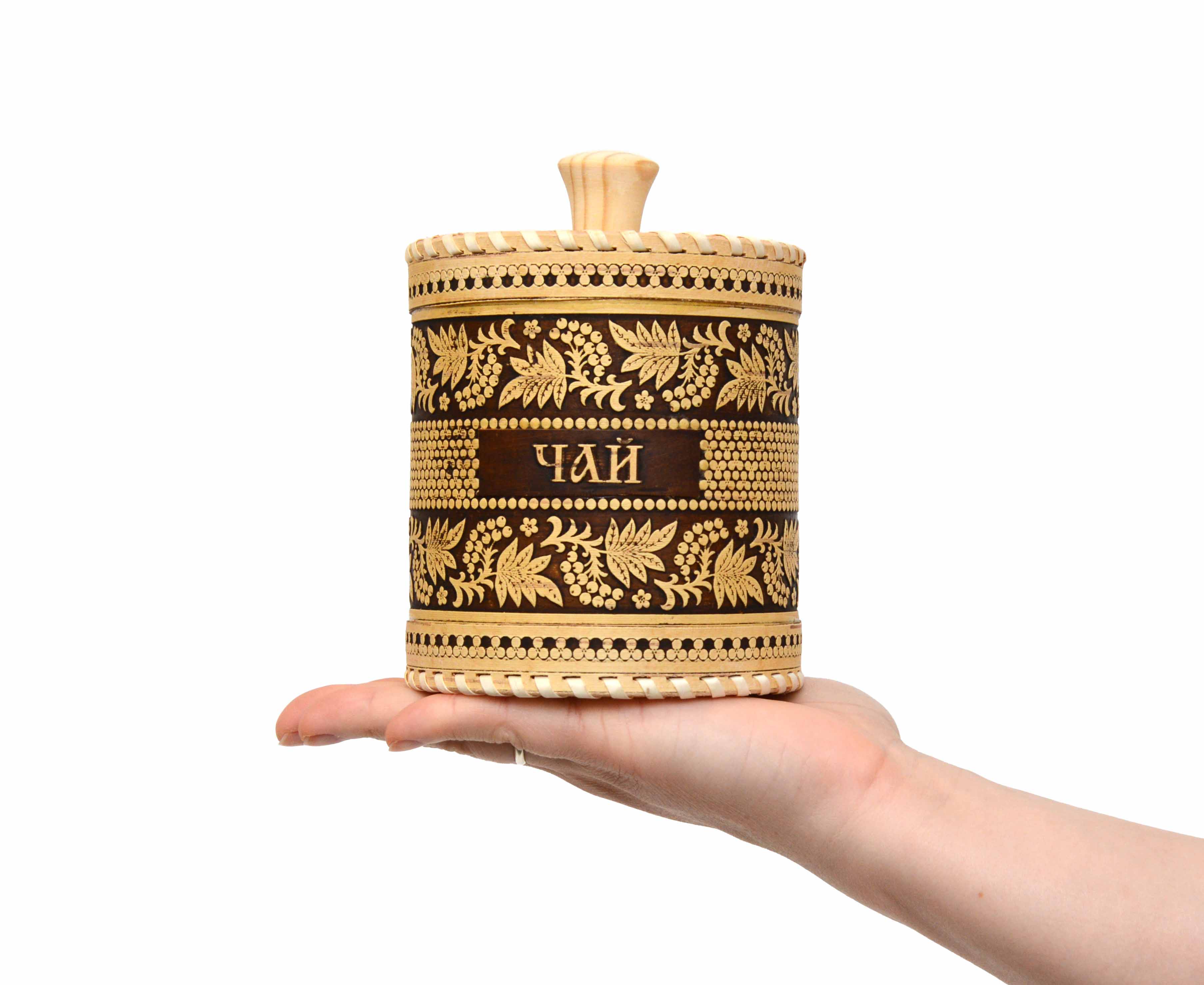 Если вы пьете чай каждый день, то его нужно где-то хранить: в бумажном пакете неудобно, в стеклянной или пластмассовой банках тоже не очень. А вот в берестяном туесе чай хранится отлично. Крышка легко открывается и закрывается. Пользоваться одно удовольствие!