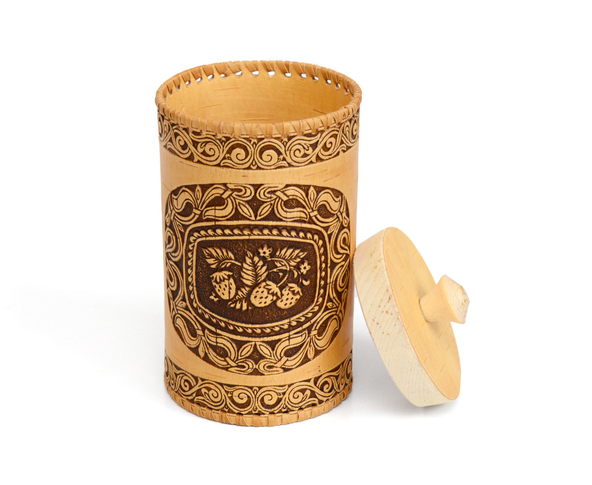 Туес из бересты подходит для хранения соли, сахара, чая, круп, трав и прочего. Также можно использовать в качестве шкатулки для хранения домашних мелочей. Приятный на ощупь. Удобный в использовании. Отлично дополнит и украсит вашу кухню и будет радовать вас и ваших гостей!