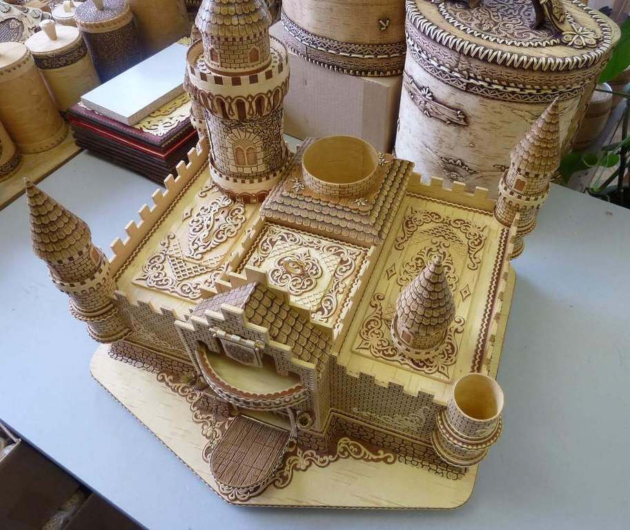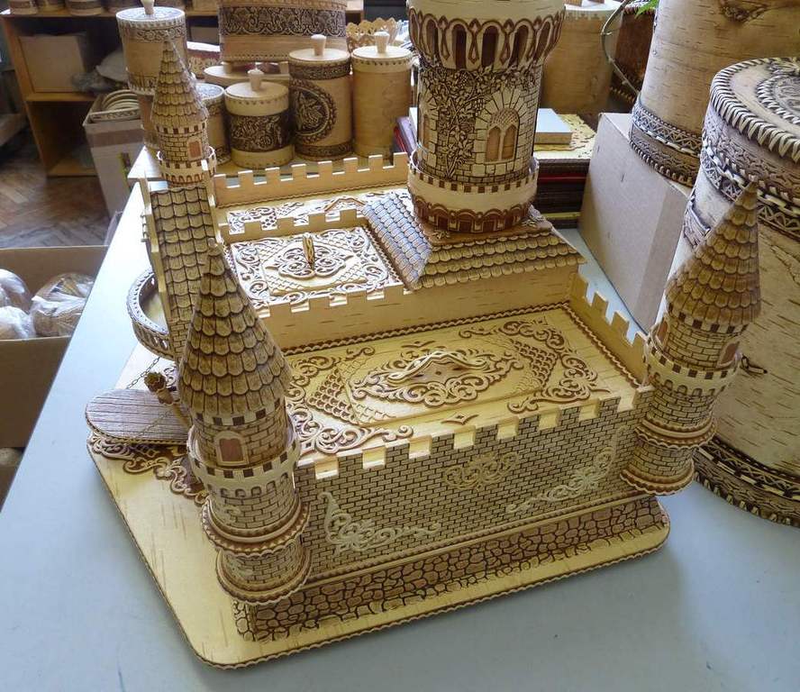 Замок из бересты — эксклюзивная работа, полностью выполненная вручную.